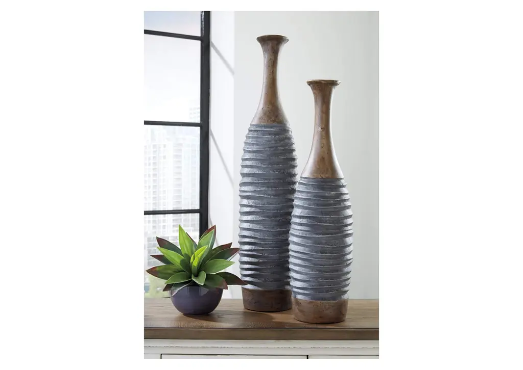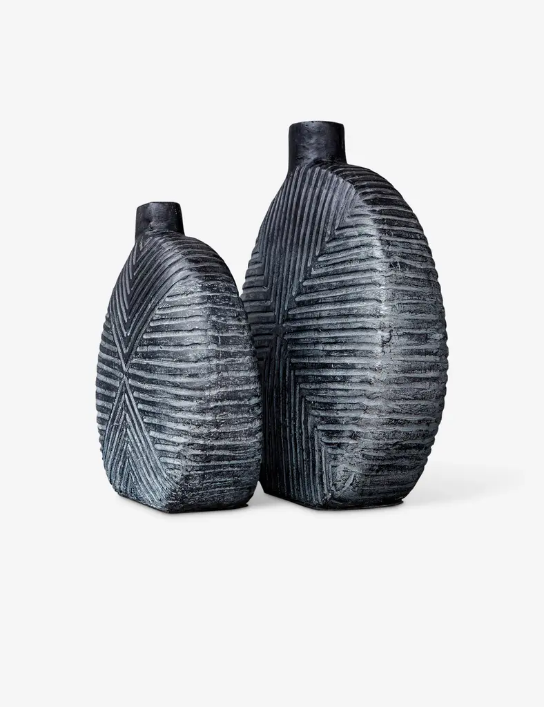 Add texture and interest to your space with this set of Blayze vases. Made of a composite paper material, these sculptural objects make it easy to cut and paste design brilliance into your home decor. Weight 25.000 lbs. (11.25kgs.)