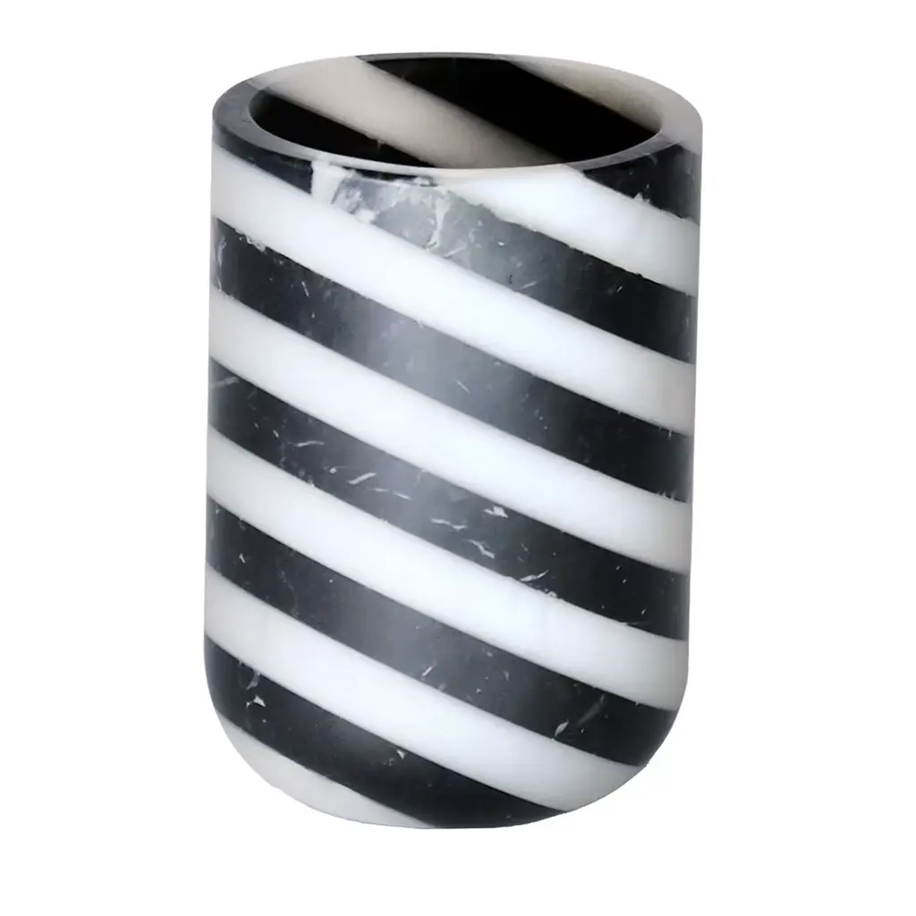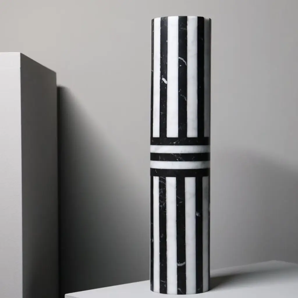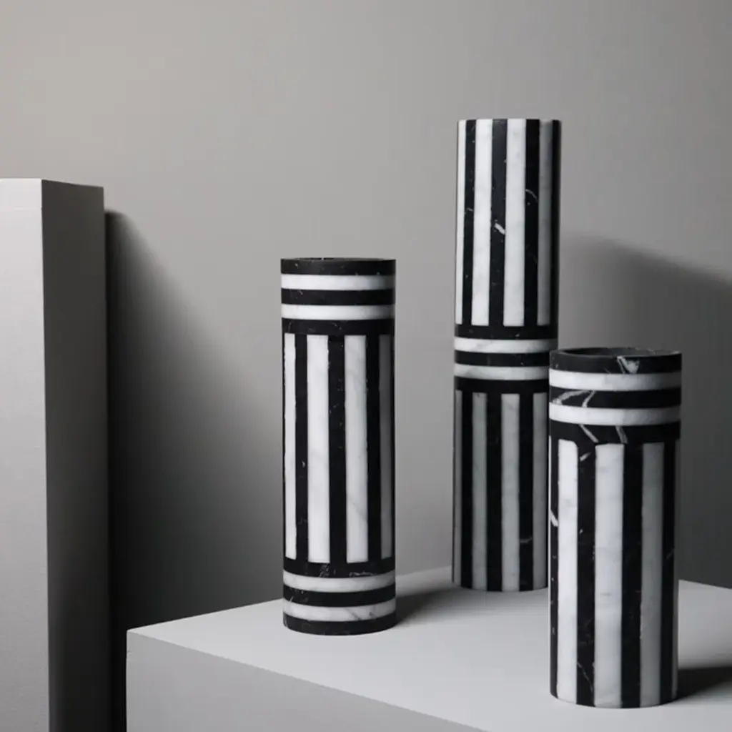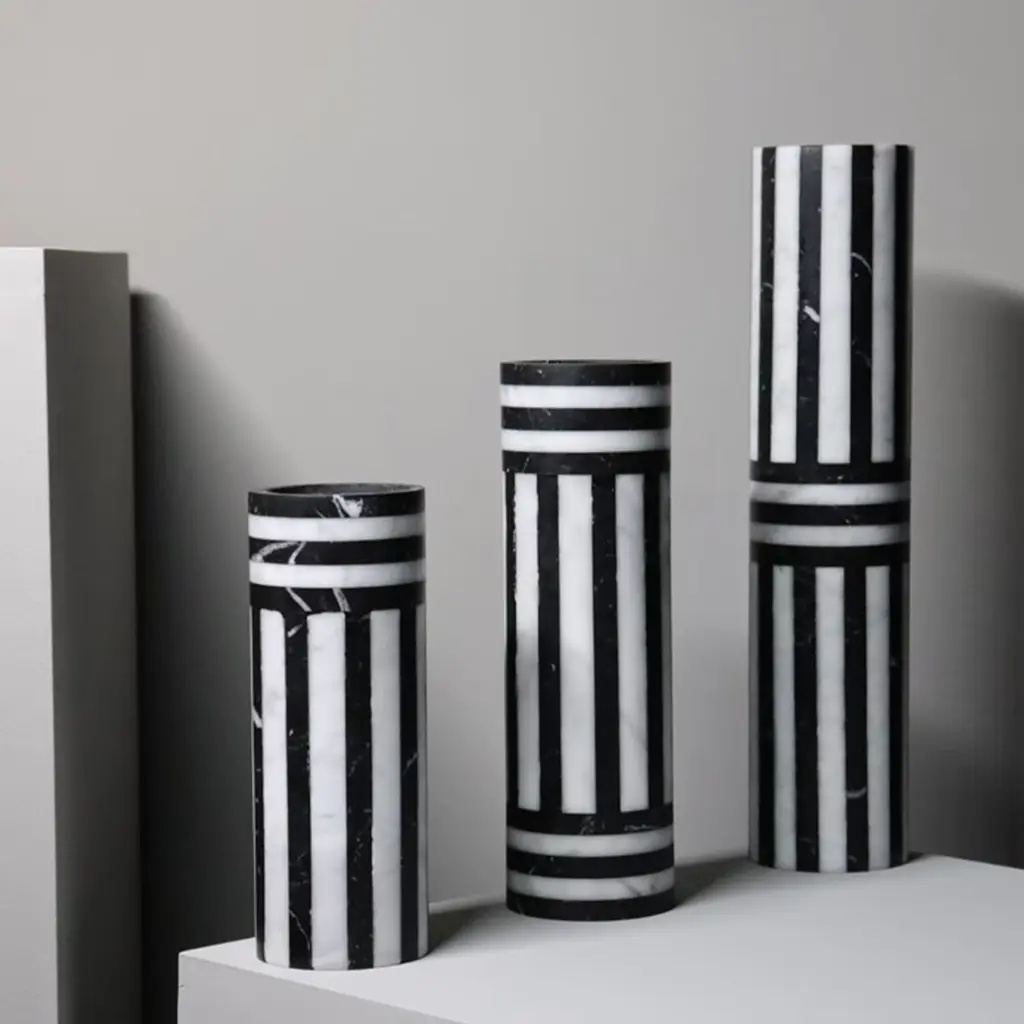 Introducing a new collection of vases, handcrafted in Italy from the highest quality stones. Bloom vases feature a solid cylindrical shape-enhancing a striped pattern created by alternating white Arabescato and black Marquinia marbles. Conceived as a soliflore, Bloom small makes a statement in any home decor.