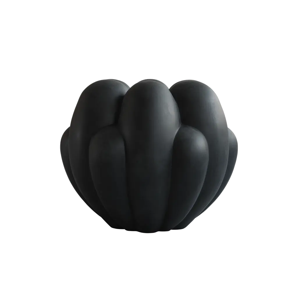 Bloom Vase is a ceramic vase.Inspired by floral shapes, BLOOM emphasizes soft and organic shapes into a collection of sculptural ceramic vases and bowls. Elegantly sculpted, each BLOOM ceramic is characterised by several flower leaves fading into each other, reminiscing the different stages of a flower from closed to open.BLOOM is an interpretation of 70s floral inspired design. But with a more raw and clean expression. The smoothly curved surface is contrasted by a strong underlying geometry and is enriched by a beautiful play of shadows around the depths of the surface. Due to its expressive design, the BLOOM vases changes experience throughout the day, according to the position of light and shadows.BLOOM comes in both vases and bowls and is made from ceramic and fiber concrete. The surface is hand glazed in order to achieve the unique surface texture. The colours may vary slightly, due to that it is a handmade product. The vase is not 100% waterproof, therefore a bag for fresh flowers is included.