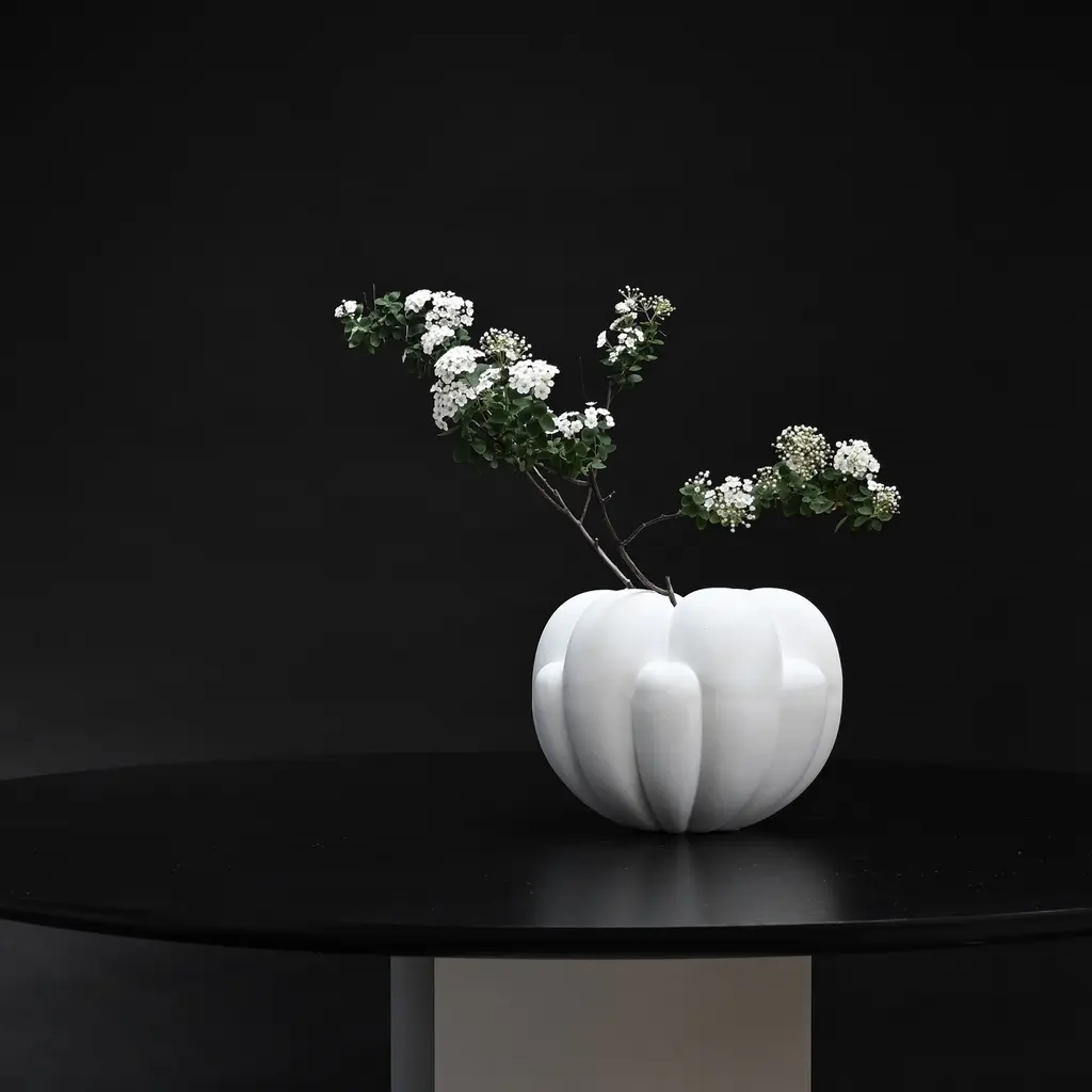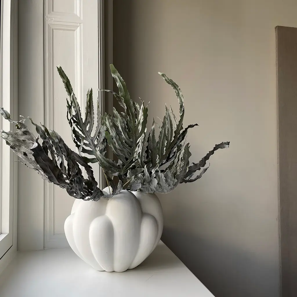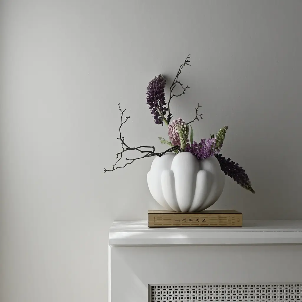 The 101 Copenhagen Bloom Vase is a sculptural piece that celebrates organic forms, with fluid shapes resembling flower petals gently merging into one another. Inspired by floral designs from the 1970s, the vase offers a raw, minimalist take on these natural elements. Its appearance transforms throughout the day, as light and shadows play across its surface, highlighting its dynamic form. Hand-glazed for a unique texture, each Bloom Vase features subtle color variations, making every piece distinct. While not fully waterproof, the vase comes with a bag for displaying fresh flowers, adding both function and artistry to any space.