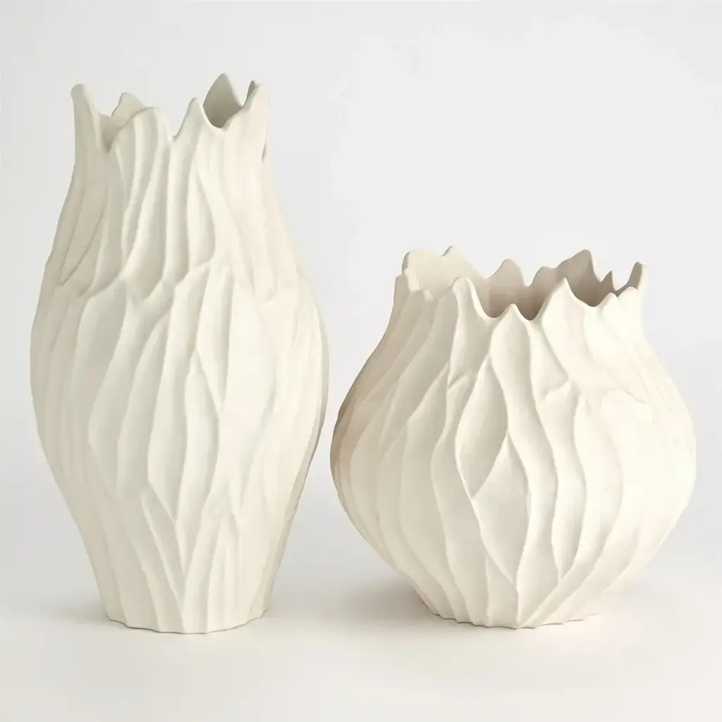 The Bloom Vase is quite large in stature and made of Portuguese ceramic with a matte white finish. Inspired by the handmade ceramic vessels of Elizabeth Shriver at ElizabethShriverCeramics.com. From a fashion forward perspective, Global Views offers accessories, furniture, statement lighting, and an assortment of rugs and mirrors to add beauty and joy to your home.