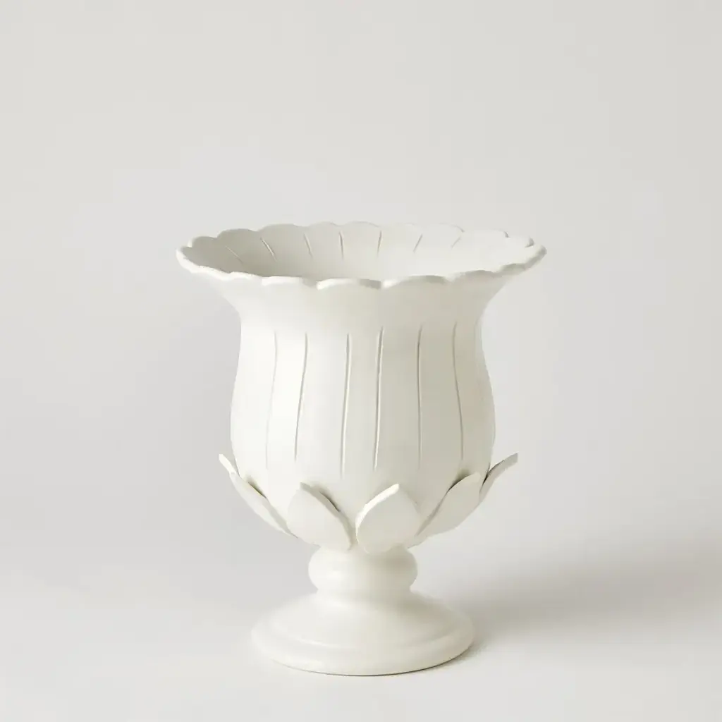 The Blossom Vases are a testament to the art of handcraftsmanship. Italian artisans embark on a meticulous process, beginning by cutting intricate petals and leaf shapes in wet clay. With unwavering precision, they hand-form and hand-shape each piece of cut clay, sculpting them into these exquisite vases that capture the beauty of nature itself. From a fashion forward perspective, Global Views offers accessories, furniture, statement lighting, and an assortment of rugs and mirrors to add beauty and joy to your home.