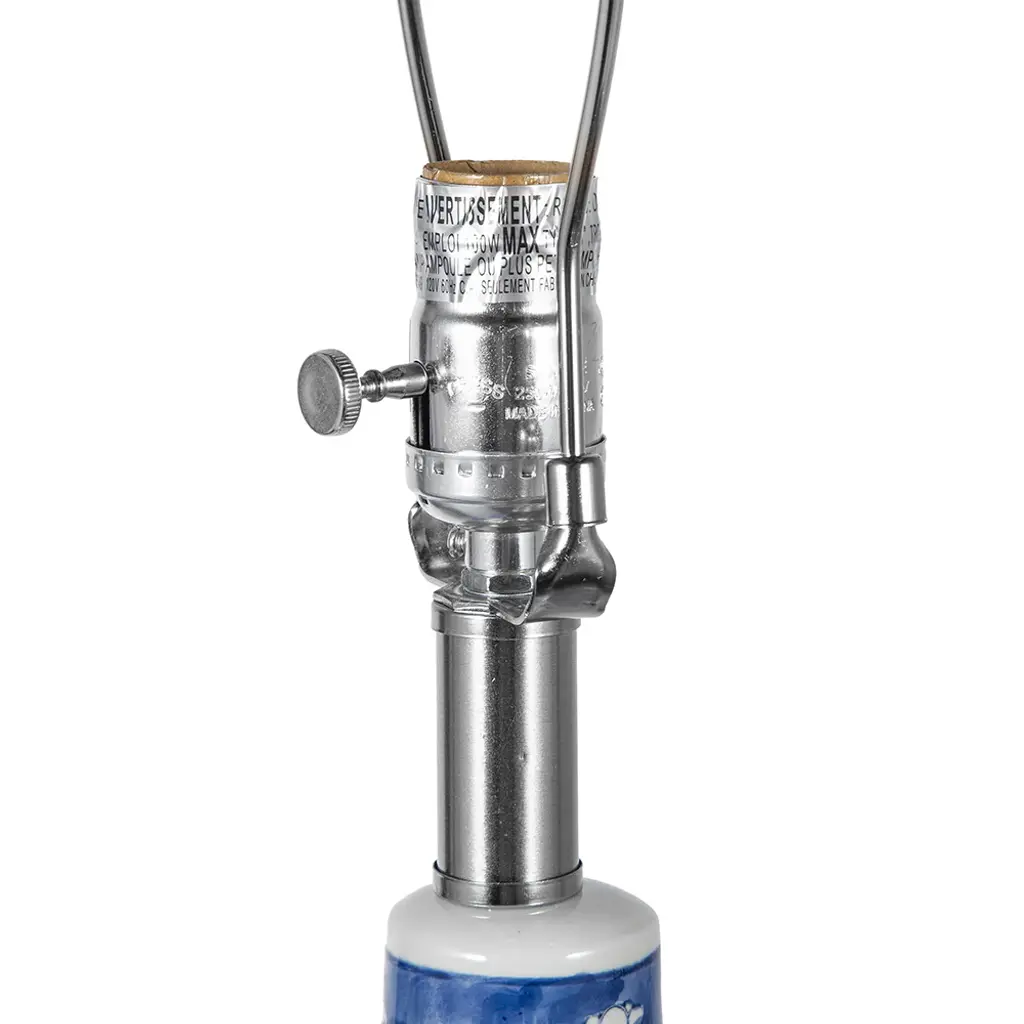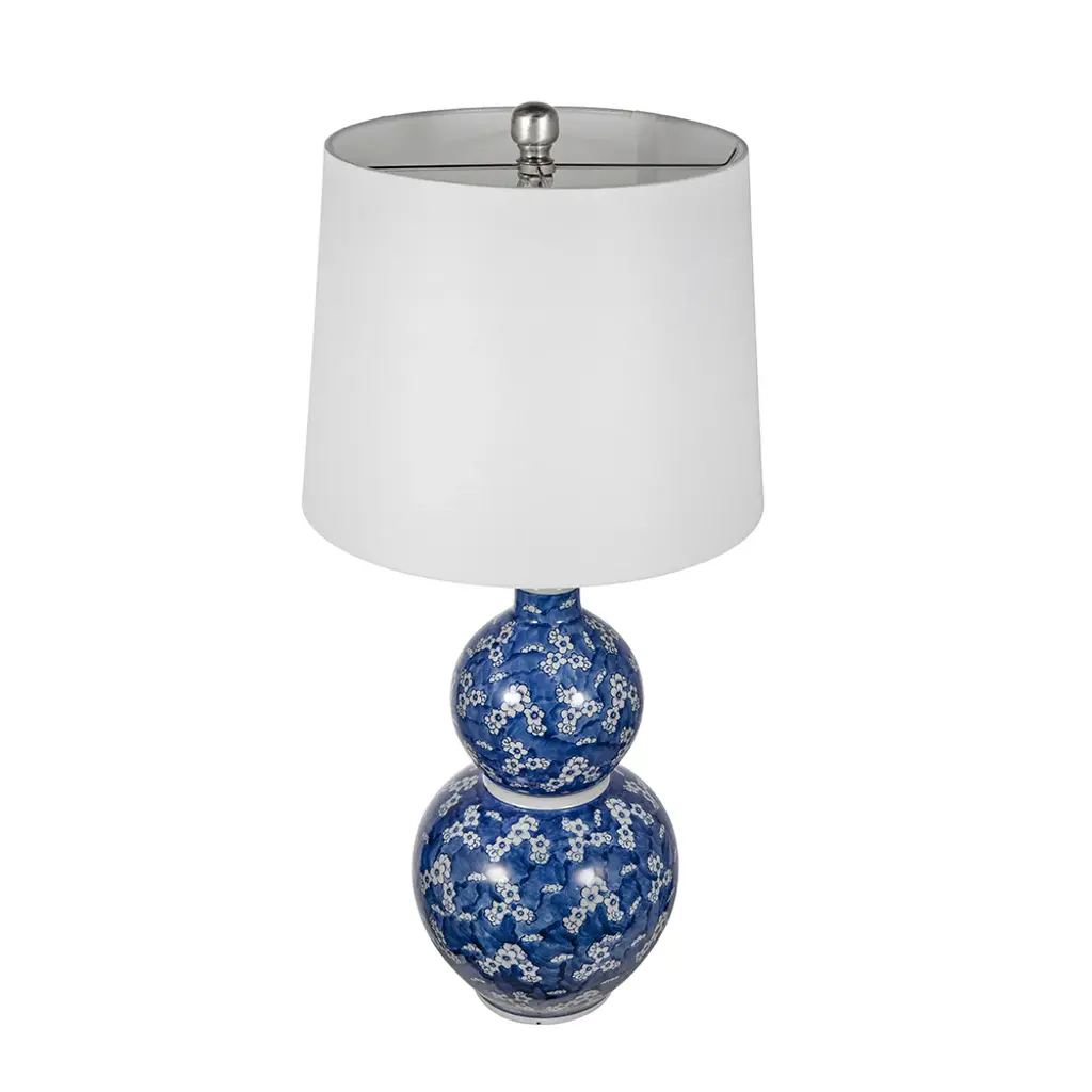 Blue And White Round Two-Tiered Ceramic Vase Lamp