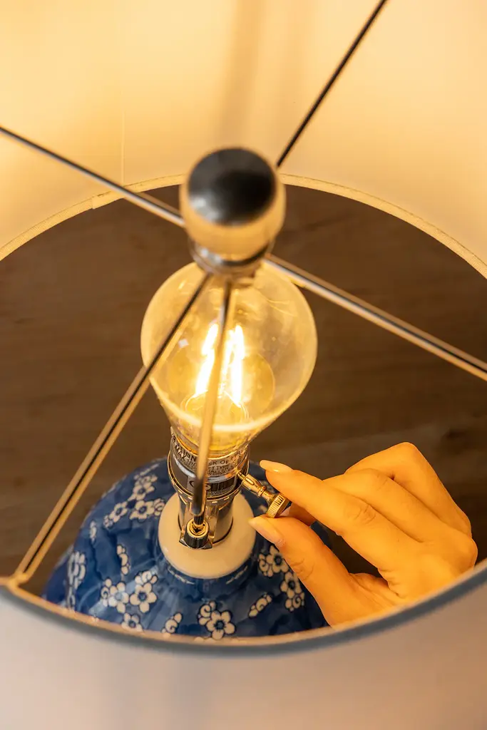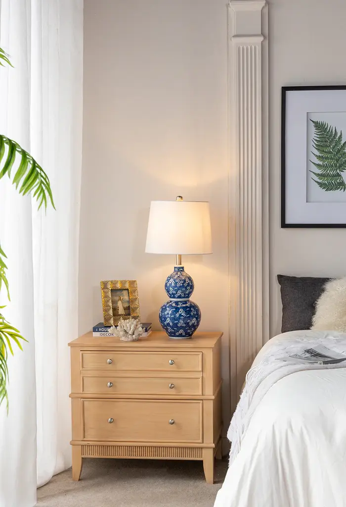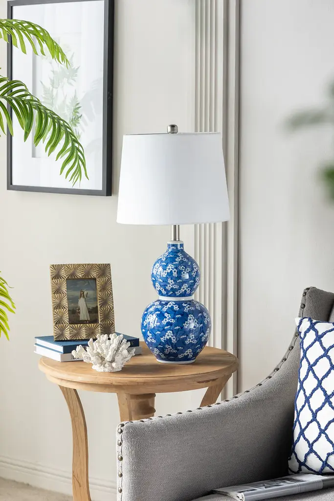 With its unique two-tiered round shape, bold blue hue, and intricate white patterns, this piece offers the playful visuals of an accent vase and the soothing ambiance of a table lamp. Measuring 25.7H x 13D, it will slot perfectly onto a large tabletop, countertop, desk, sideboard, or anywhere else throughout your home and office, creating a solid focal point no matter the location.