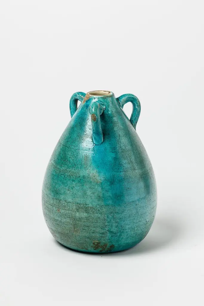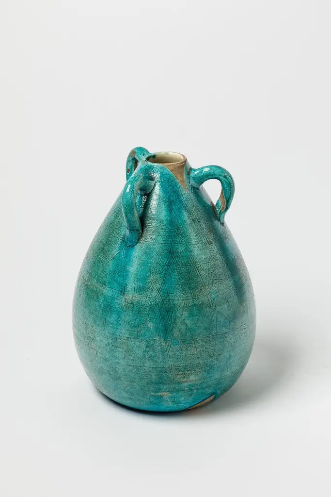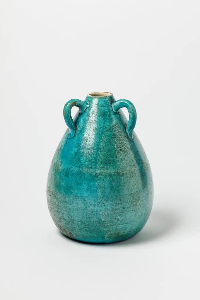 In the style of Jean BesnardOriginal Art Deco ceramic vaseRealised circa 1930Blue-green ceramic glaze colorMeasures: Height 29 cmLarge 20 cm.