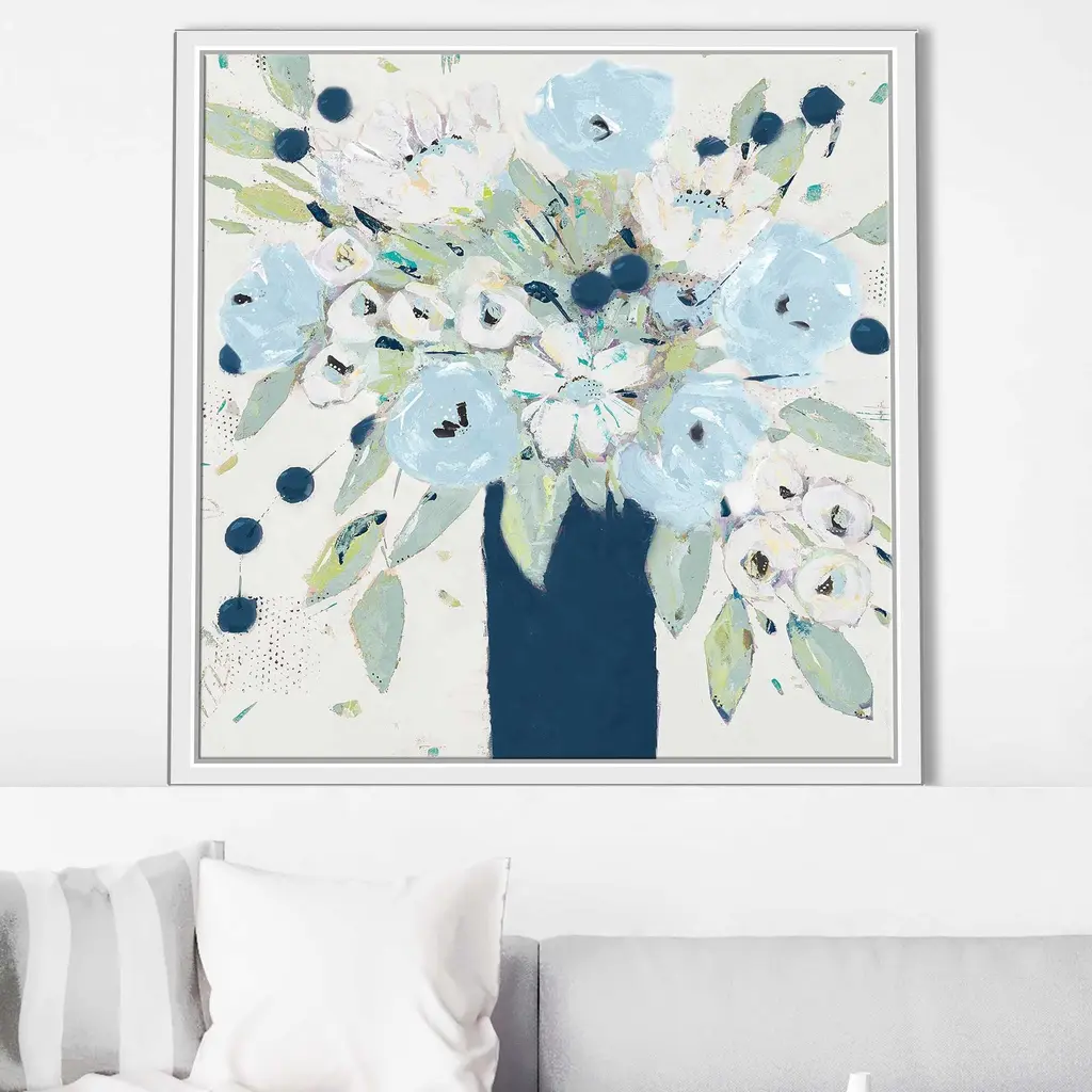 "Blue Bouquet Vase" Print On Floating Canvas - 31.5 X 31.5
