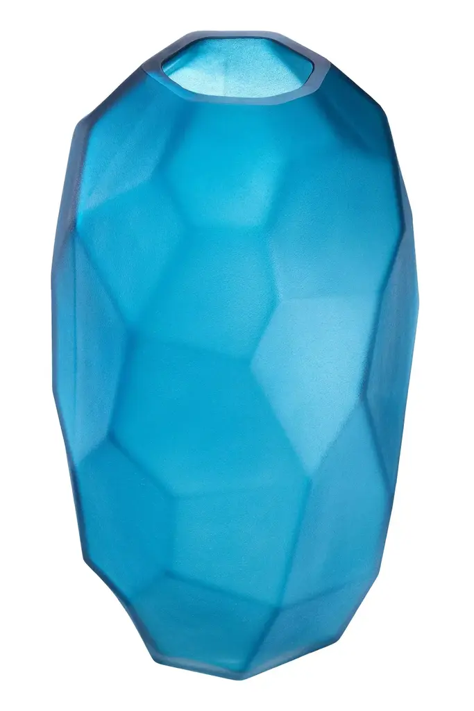 A surface with geometric planes and a matte finish makes the blue Fly S Vase a stylish accent for any table, mantel or shelf. Hand blown by skilled artisans, each piece is totally unique.