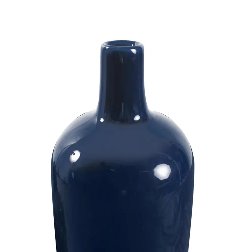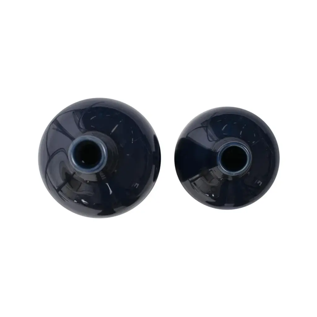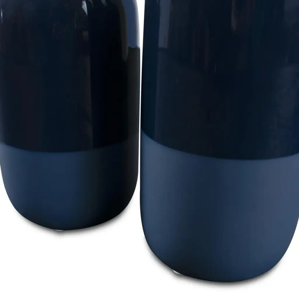 The vases come in a set of two, with a glossy blue body and a matte blue base. The striking interplay between the glossy and matte finishes creates an eye-catching aesthetic. Available in both large and small sizes, this vase set is perfect for adding a touch of the perfect blue hue to your home decor.