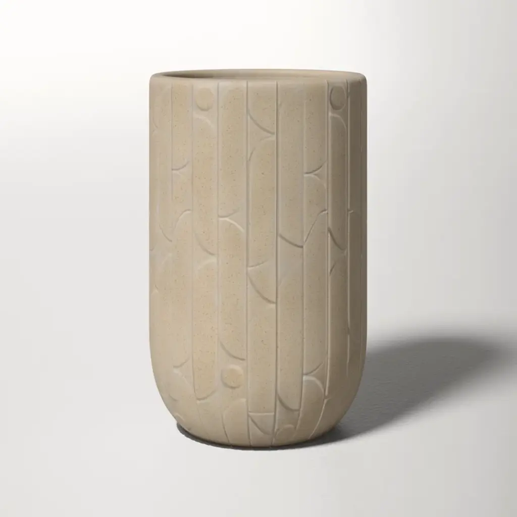 The bisque finish and continuous relief pattern of the vase make it a subtle way to add a clean style to your home.