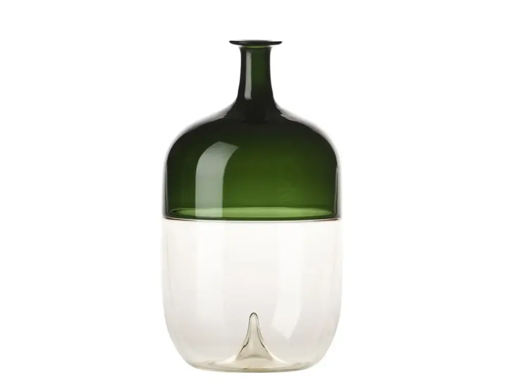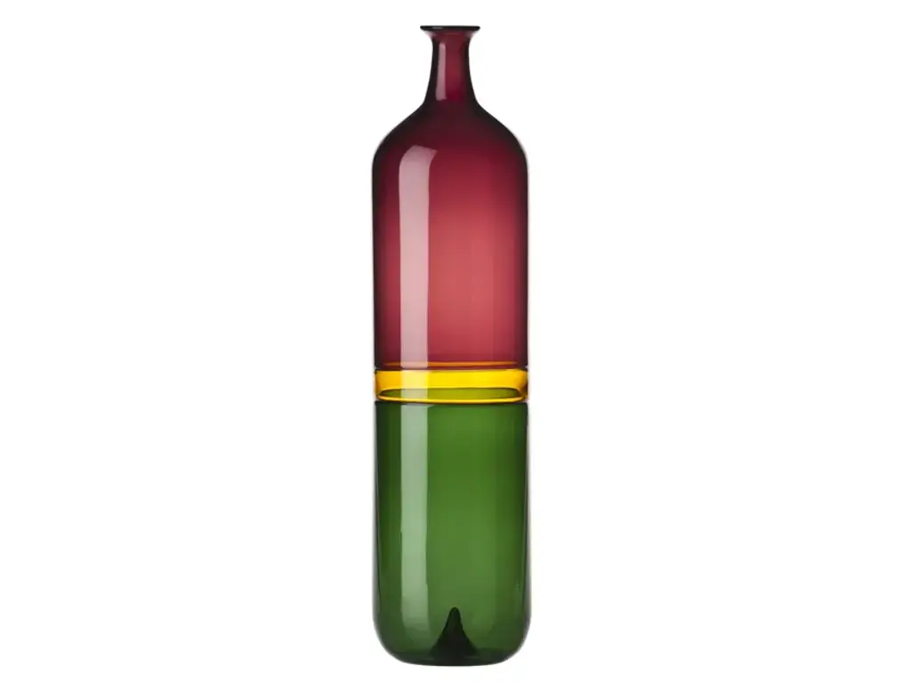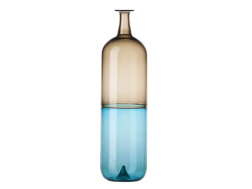 Bolle is a vase made of blown glass with the incalmo technique. Available in different sizes and colors.Landscapes of glass and color. Below and above. Before and after. Bolle (‘Bubbles’) transforms air into matter, in two distinct chromatic areas, physically united with the incalmo technique - the fusing of two blown forms. One and two. Taupe and Adriatic Sea blue. Straw and red. Now and forever.Models:Cod. 502.01 - Straw-yellow / RedCod. 502.02 - Grey / AmethystCod. 503.00 - Grass green / Amber yellow / VioletCod. 503.01 - Grey / Blue greenCod. 503.02 - Straw-yellow / Grass green