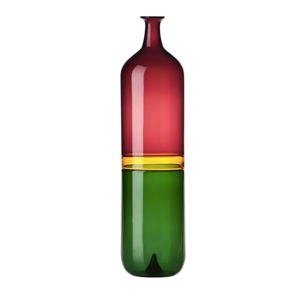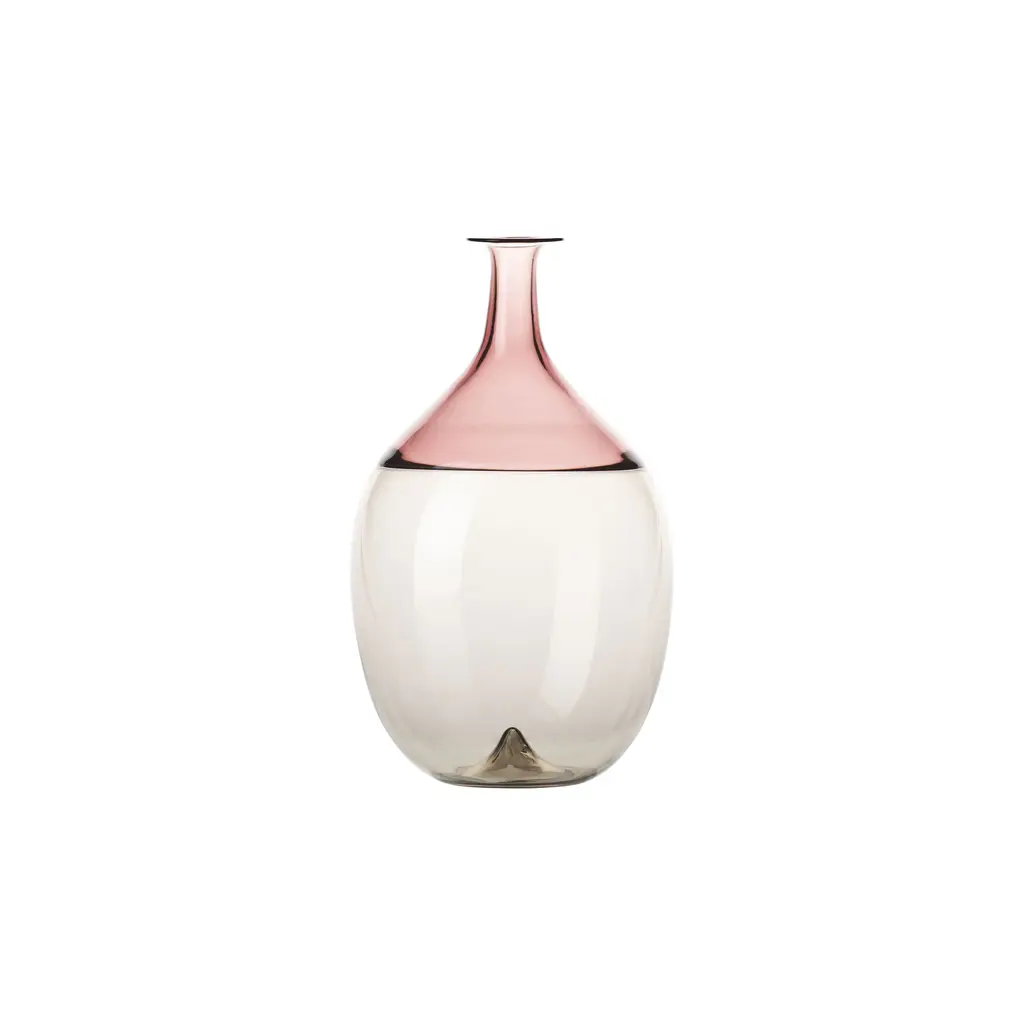 Indulge in the captivating landscapes of glass and color with the Bolle Vase from Venini. Crafted with the exquisite incalmo technique, two blown forms merge to create a harmonious design. Available in taupe and Adriatic Sea blue, or straw and red, this vase is a perfect fusion of elegance and artistry. Highlights