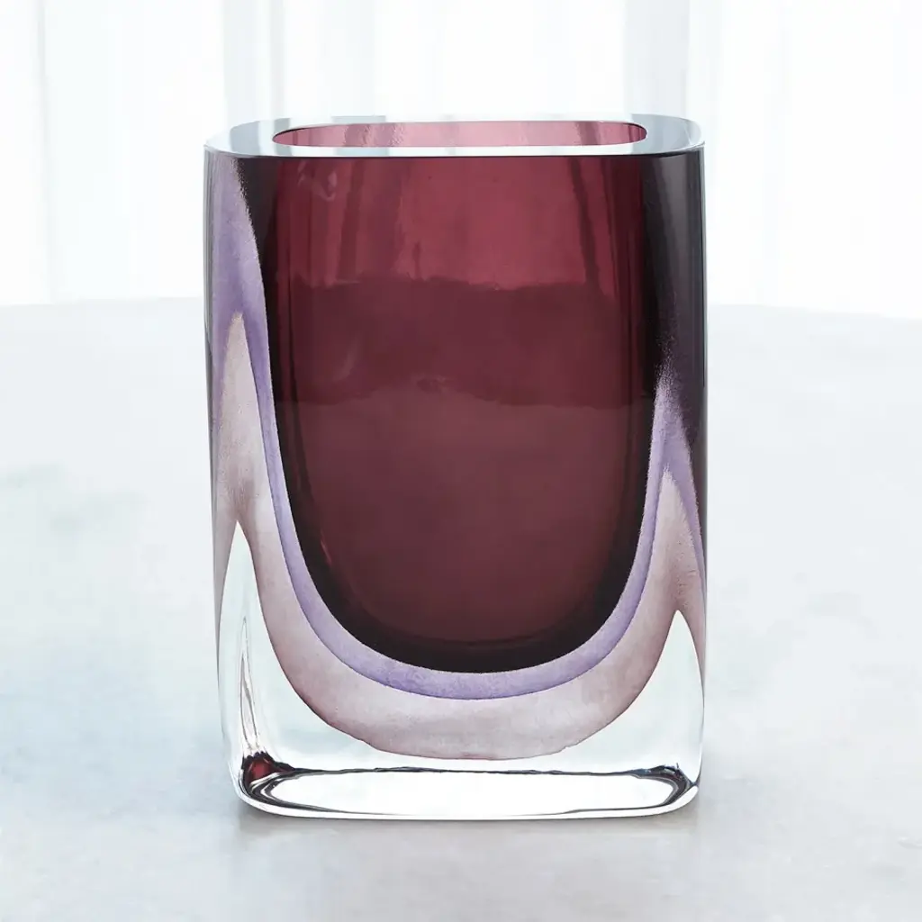 The encased color is accomplished by blowing colored glass in layers. This vase is handcrafted from thick layers of clear & colored art glass. This artisan process produces substantial and important pieces. From a fashion forward perspective, Global Views offers accessories, furniture, statement lighting, and an assortment of rugs and mirrors to add beauty and joy to your home.