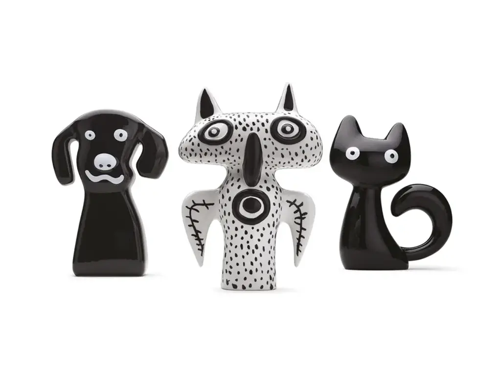 Bozo is a ceramic vase part of the Kritters collection.Kris Ruhs created three ceramic vases for Qeeboo that are part of a family called Kritters. In black and white, these sculptures represent different animals with a strong identity: a cat named Dalila, a dog named Bozo and an owl named Spike.