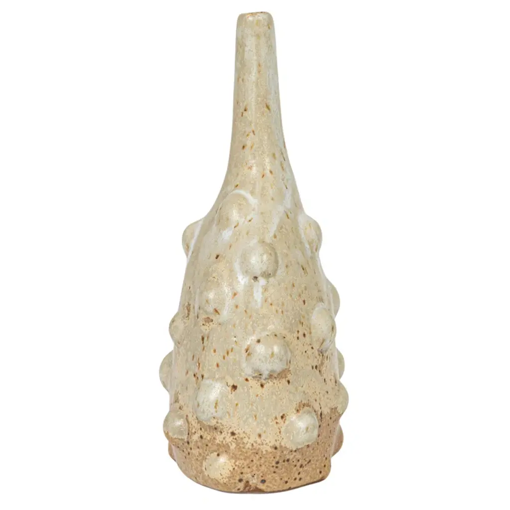 This stoneware vase, crafted from high-temperature fired ceramic, features raised dots and a white reactive glaze for a textured and dimensional look. Its round shape and narrow opening make it suitable for displaying fresh or artificial flowers, plants, or branches. The reactive glaze creates a smooth, glossy surface, while the white color adds a cozy and elegant touch. This vase is suitable for farmhouse, coastal, French country, boho, or lodge styles and can be placed on tables, shelves, mantels, or windowsills to create a cozy atmosphere. Each vase may vary slightly in color and texture due to the reactive glaze process. This vase is a perfect gift for art and nature enthusiasts.