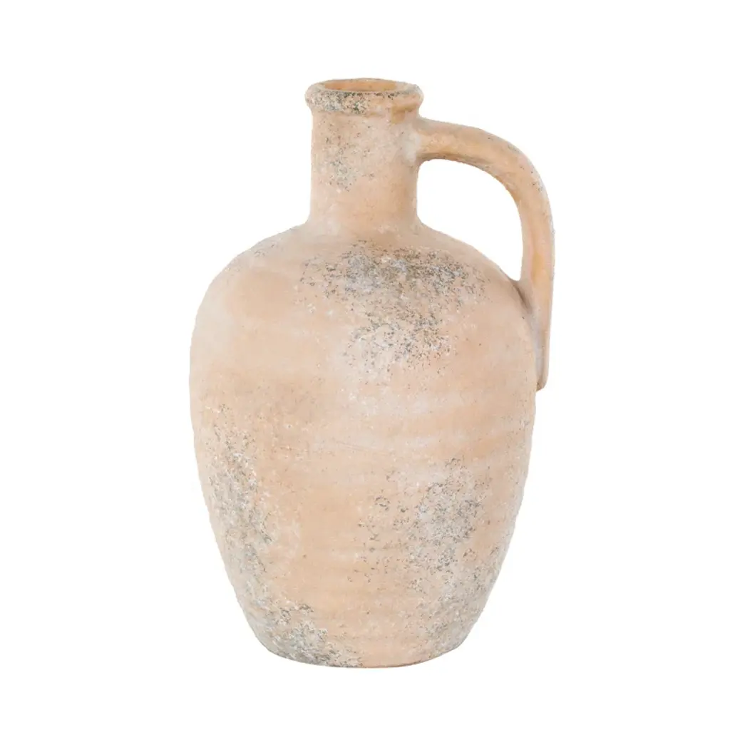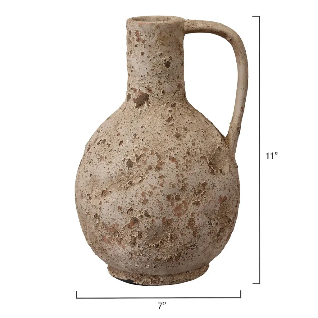 At once rustic and refined, this decorative vase adds a timeless accent to any tabletop. Carefully crafted by hand of ceramic and given a weathered surface effect to create the look of a vintage find and varies with each piece for one-of-a-kind beauty.