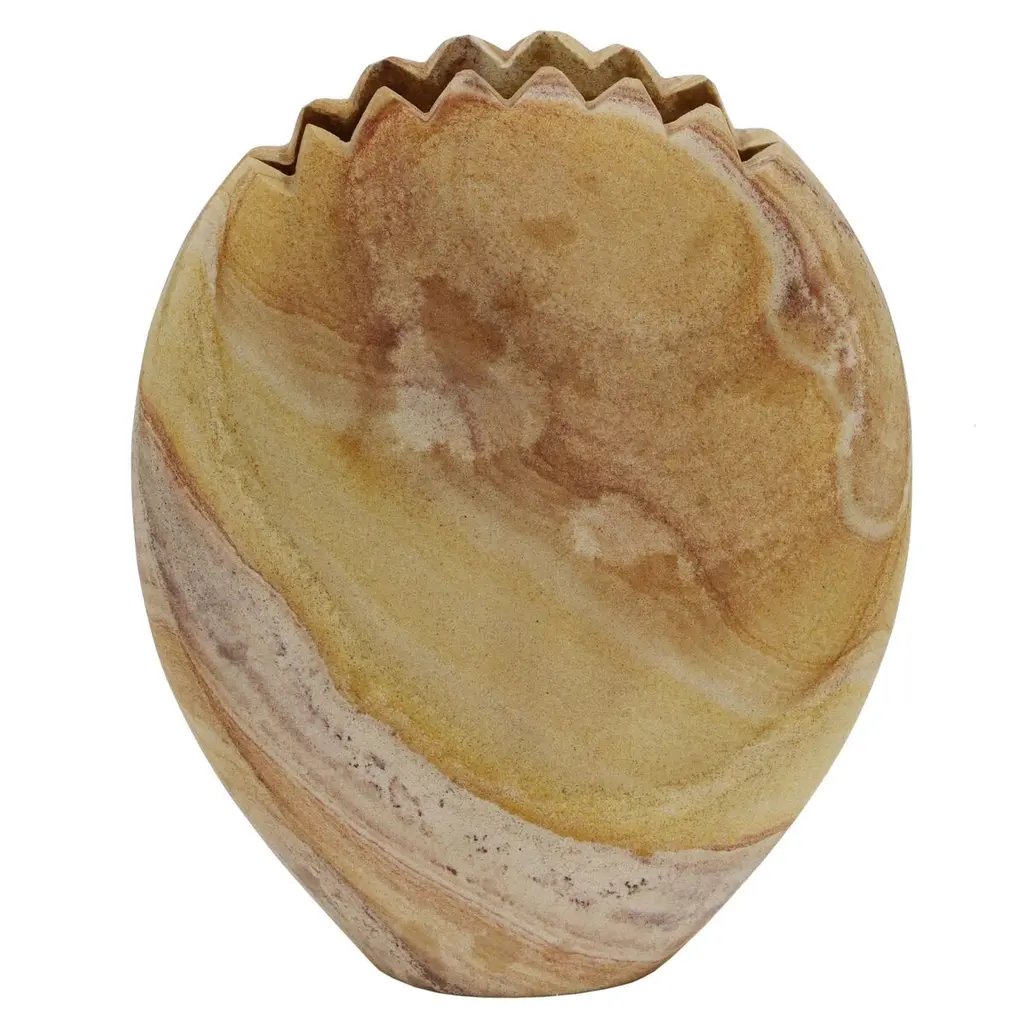 Introducing the Braulia Mantis Stone Vase, a beautiful and uniquely crafted vase. This natural stone vase is a great addition to your home to add a chic and captivating touch. The shell shape with a pointed scallop edge adds artistic decor to your space or an exquisite vase for your floral arrangements.