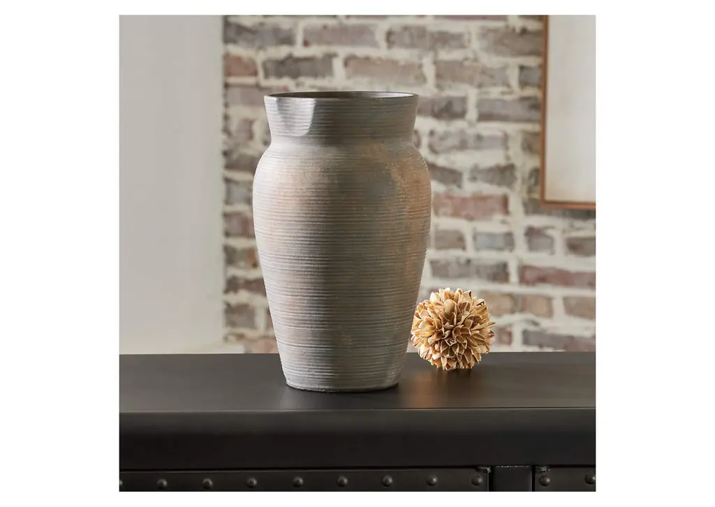 Contain your enthusiasm for casual earthy elegance. Loaded with a sense of antiqued beauty, the stunning Brickmen ceramic vase adds a beautiful timeworn quality to your home. Let it wow on its own, or kick things up a notch and fill it with faux or dried bouquets. Weight 6.000 lbs. (2.7kgs.)
