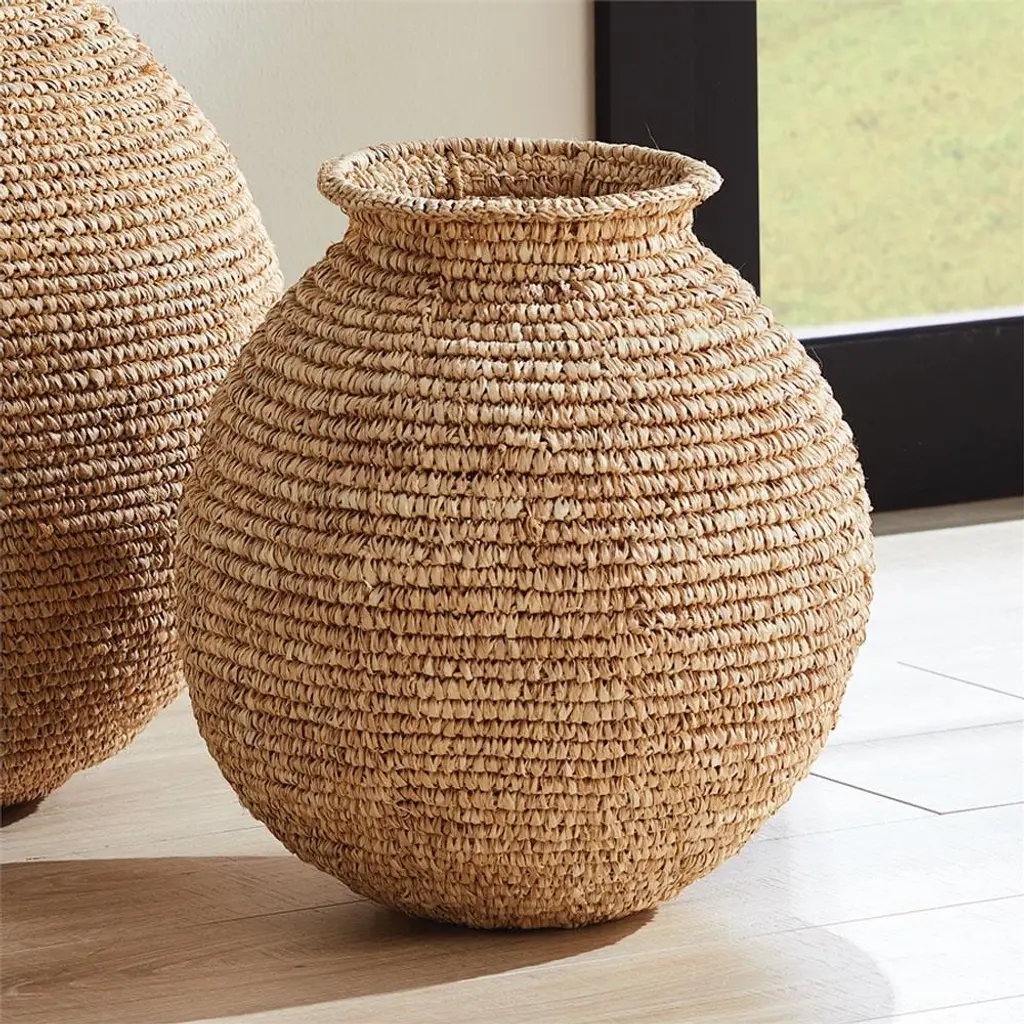 Brielle Coastal Beach Natural Corn Husk Woven Decorative Vase - Small