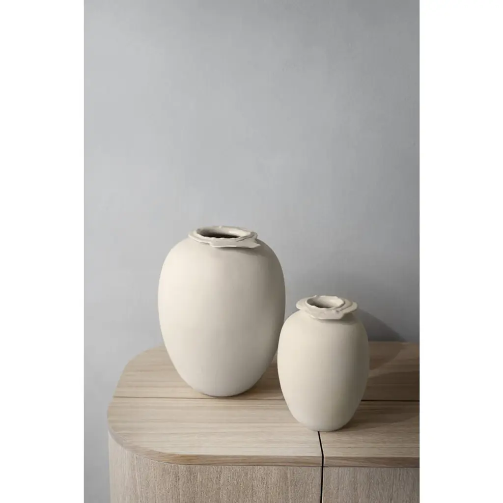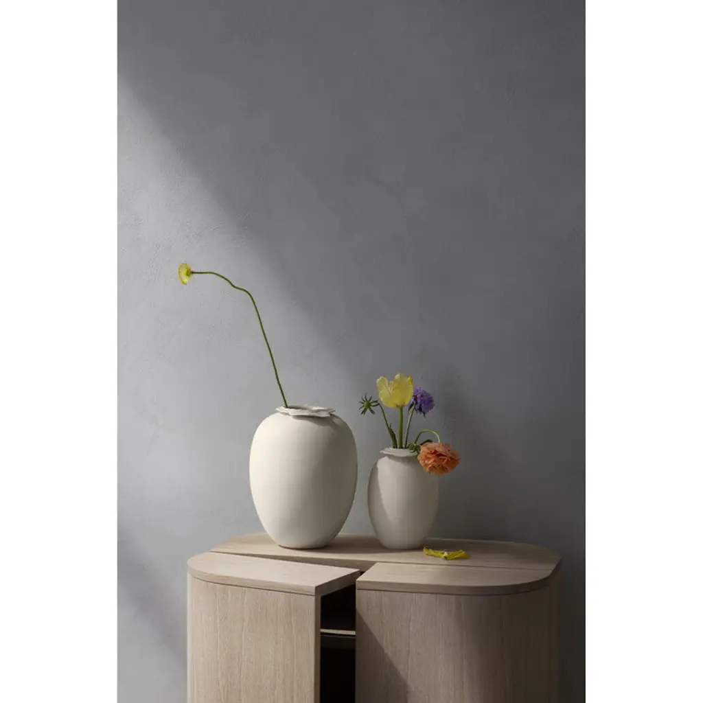 The Brim vase was born from designer Ann Kristin Einarsen's goal to create a new ceramic vase every day in 2019. From this collection of 365 vases, Northern exclusively shares the soft and beautiful Brim. Brim vases are made of earthenware clay by skilled artisans in Italy. Typically, any anomalies and imperfections are cut away, but in the Brim vase, the handprint is chosen to be left visible to enhance each vase's individual beauty and unique personality. In this vase, the imperfection is the perfection.