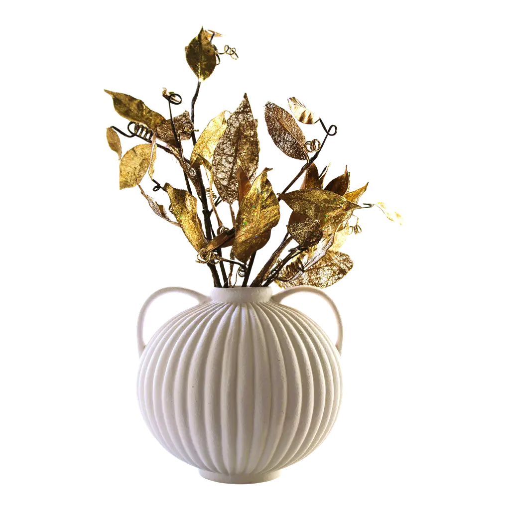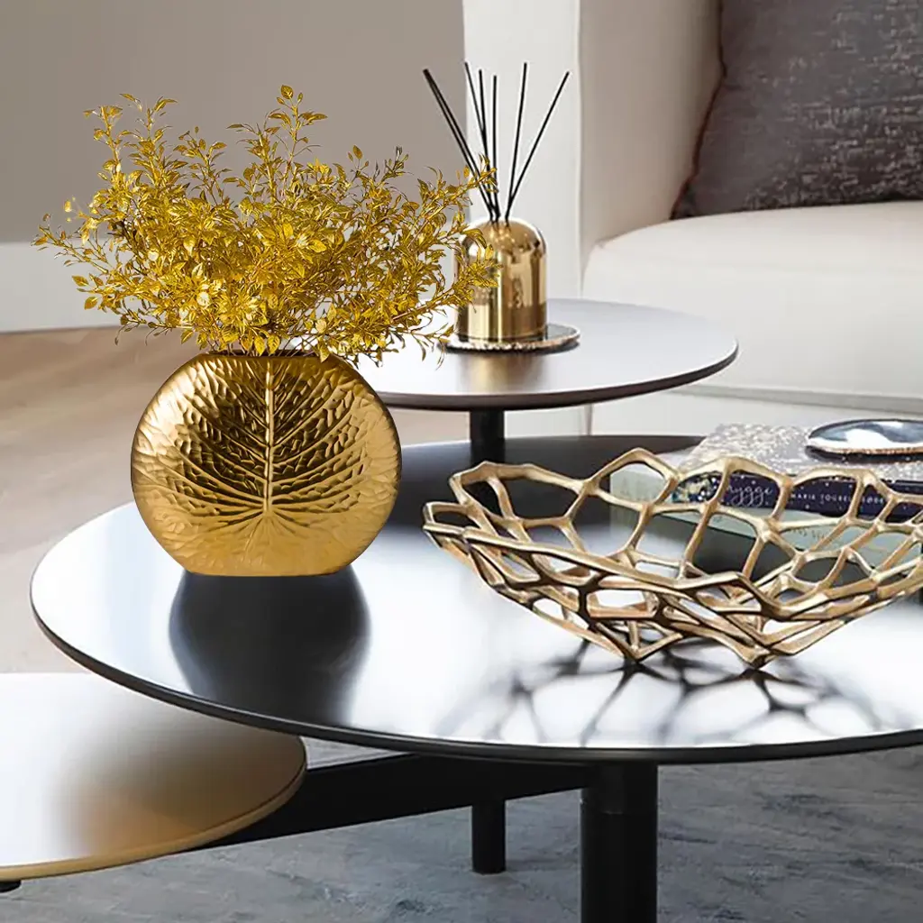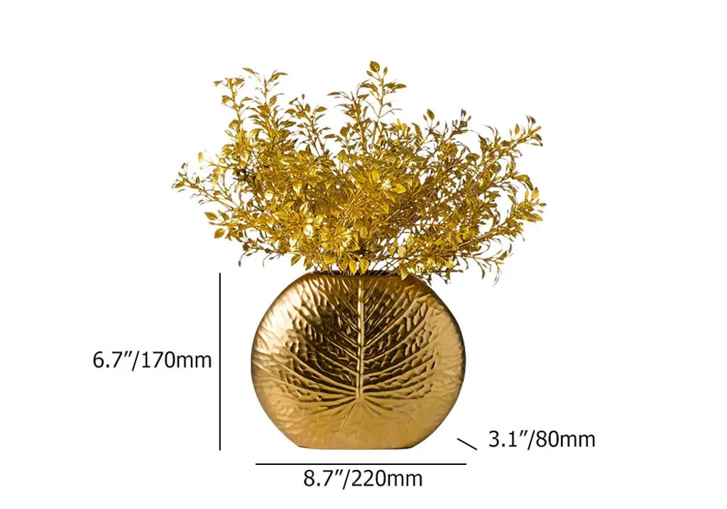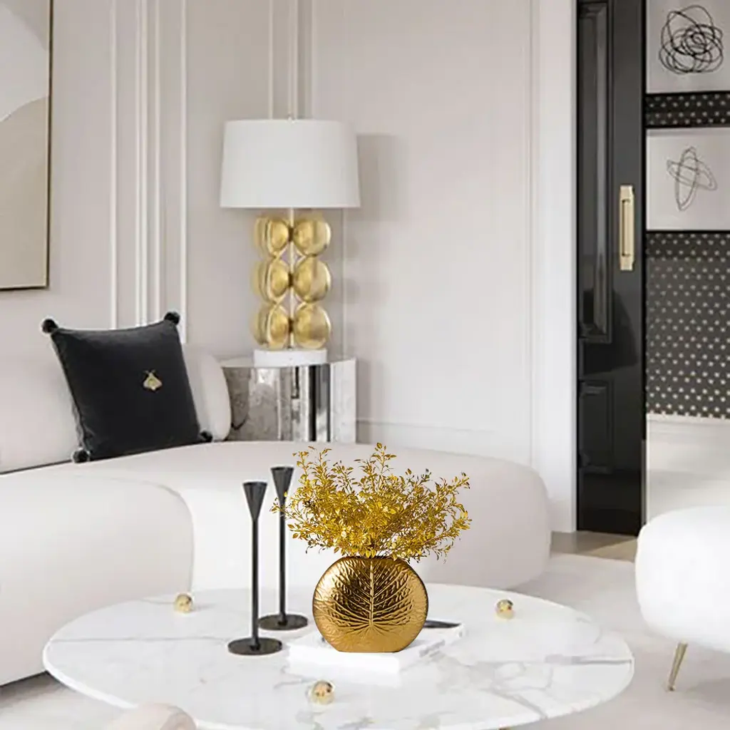 Raise the level in your home decor with this bundle of bronze gold luxury artificial plants from us. This bouquet is handmade and really turns heads, thanks to its fancifully textured gold-finished ceramic vase, which brightens up any room. Perfect decoration for any living room, bedroom, dining room, or office.