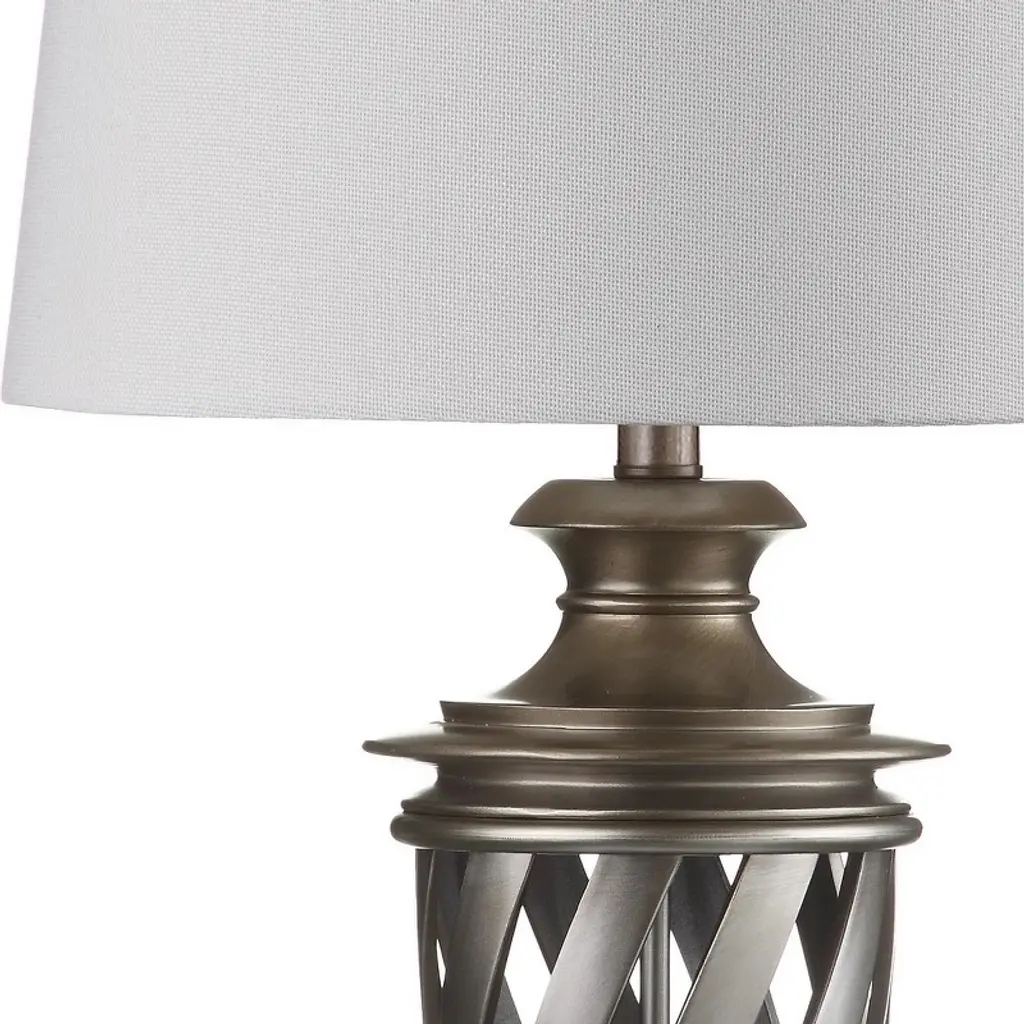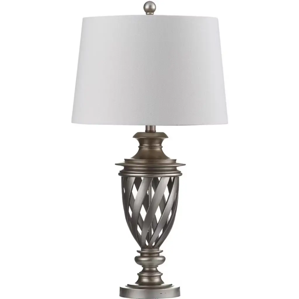 Introduce elegance into your space with the Byron table lamp set, crafted in antique silver metal. Each lamp stands at 28.5 inches, offering a perfect balance between modern sophistication and classic charm. The intricate design of these lamps captures attention, making them the ideal focal point for any room. Illuminate your living areas, bedrooms, or office with a soft, warm glow that complements any decor style effortlessly. The quality metal construction ensures that these lamps blend seamlessly with both traditional and contemporary aesthetics. Place them on a pair of end tables, or accent your console table with this stunning set to create a cohesive look that speaks to your refined taste in home decor. Transform your interior with the remarkable presence of the Byron lamp set, where style meets functionality.