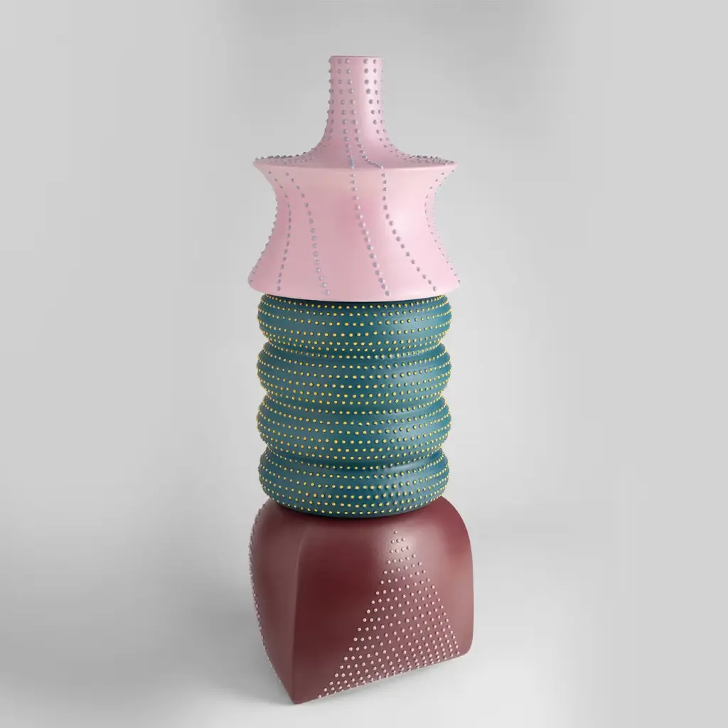 The Cacti top element decorative vase is a striking embodiment of nature’s elegance, inspired by the resilience and beauty of desert cacti. This decorative piece features a unique, stackable design that allows it to be seamlessly combined with other Cacti vases, creating a harmonious ensemble that enhances any interior space. The vase’s structured surfaces resonate with the raw, unrefined beauty typical of desert flora, showcasing the adaptability of plants thriving in harsh environments. Its versatile shape allows for creative arrangements, encouraging personalization and artistic expression in floral displays. This vase opens up a realm of design possibilities, inviting exploration and innovation in home décor.