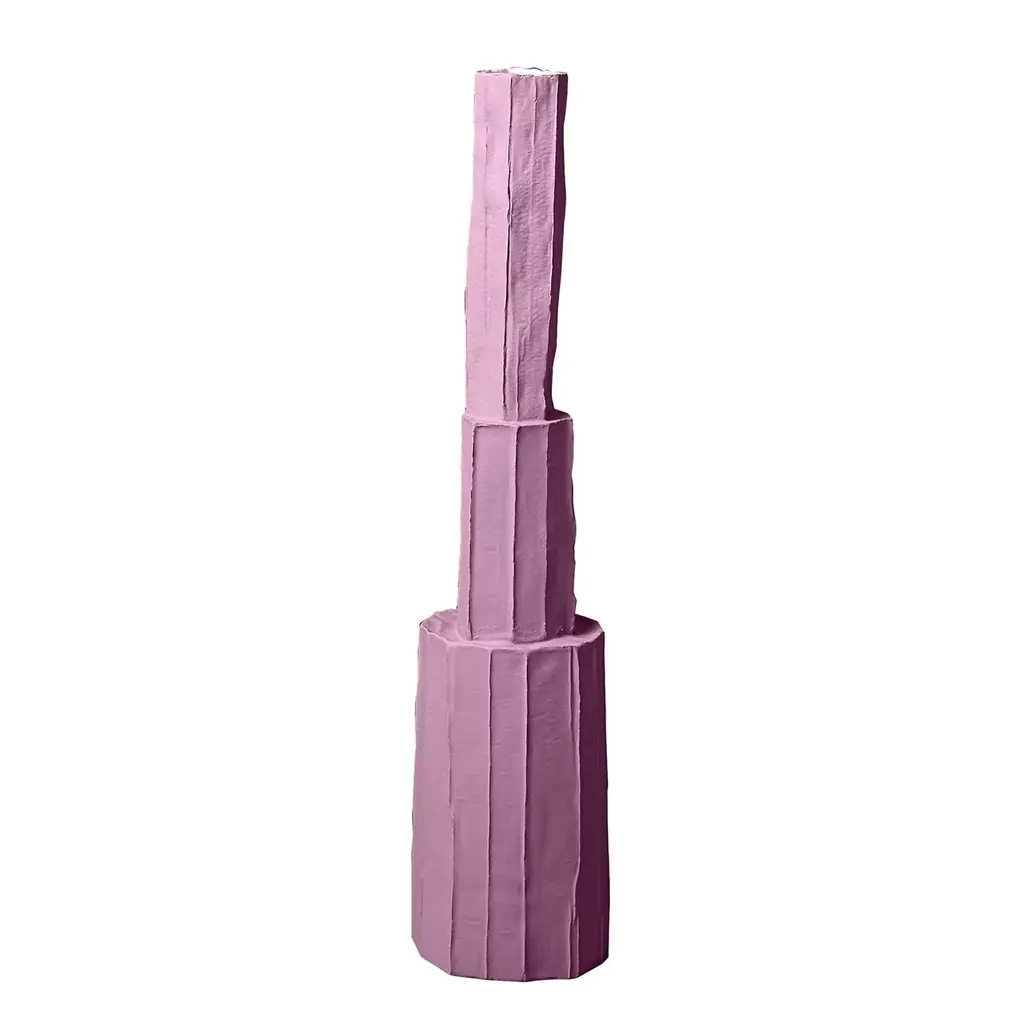 Italian ceramist Paola Paronetto handcrafts this striking vase with paper clay (pulp fiber and clay mixture), a laborious process that results in works with rich tactile quality. This vase features four cylindrical shapes of various sizes assembled in the shape of a cactus, the ridged surface giving it a paper- and cactus-like quality. The glossy white interior is waterproof and can contain fresh flowers or succulents to create unique displays. Each piece of the collection is unique and unrepeatable. Every one of Paola Paronetto’s creations is unique. Slight variations in shape, colour and size are to be considered a guarantee of authenticity and value. They are finished with non-toxic satin-finish enamels. Although very rarely, it is possible for them to leak after long periods of exposure to water. It is therefore advisable to test their water resistance before using them on delicate surfaces. They should not be used as dining utensils. The white pieces can be washed with water or sanitizing products, whereas the coloured pieces must be treated more gently and cleaned with a feather duster or a soft cloth, dry or moistened very slightly with water.