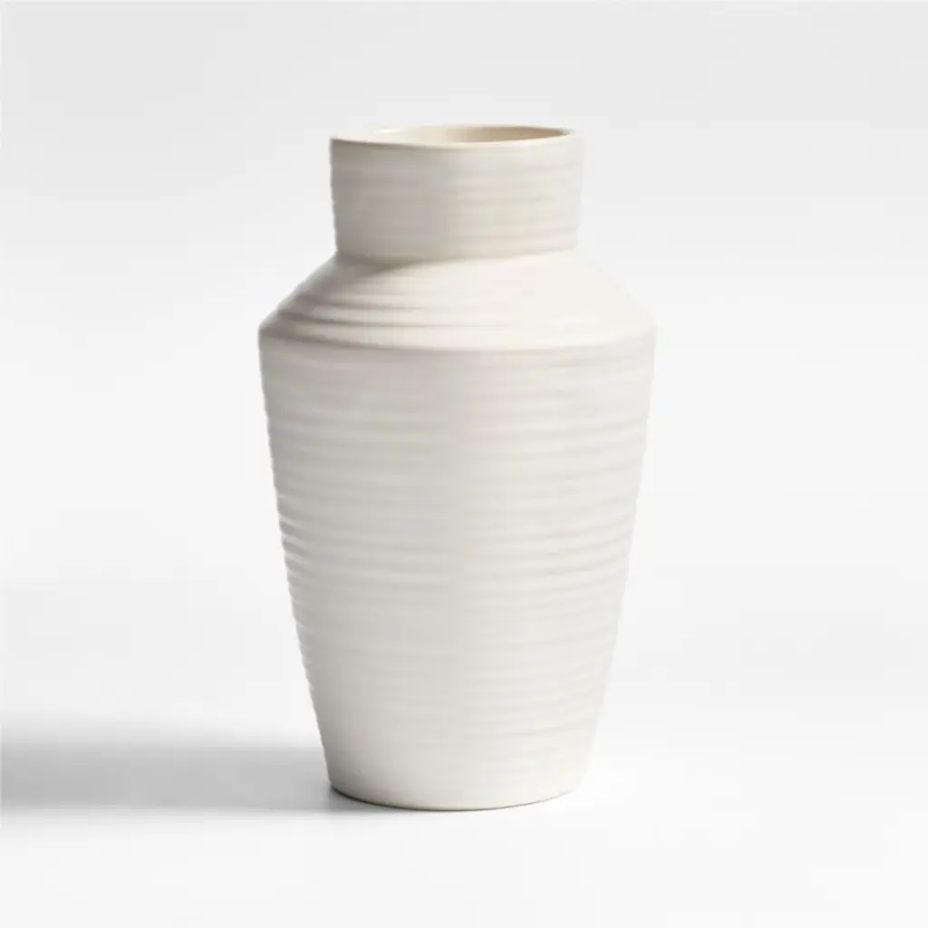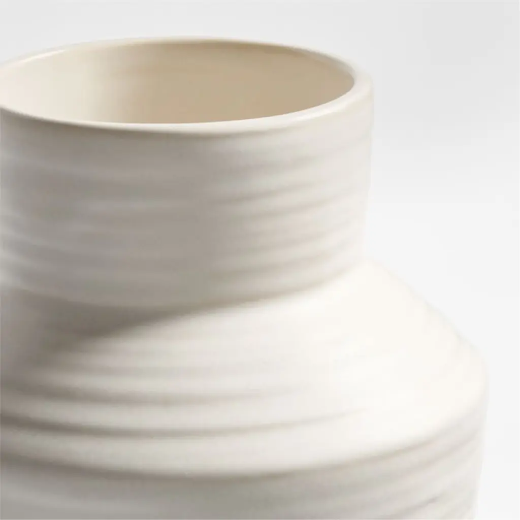 Stately and sculptural, our Cadeau vase is a classic. Talented craftspeople cast each one by hand before coating the subtly ribbed stoneware with semi-matte cream glaze. We love to fill this large vase with fresh flowers for host, birthday or just-because gifts.