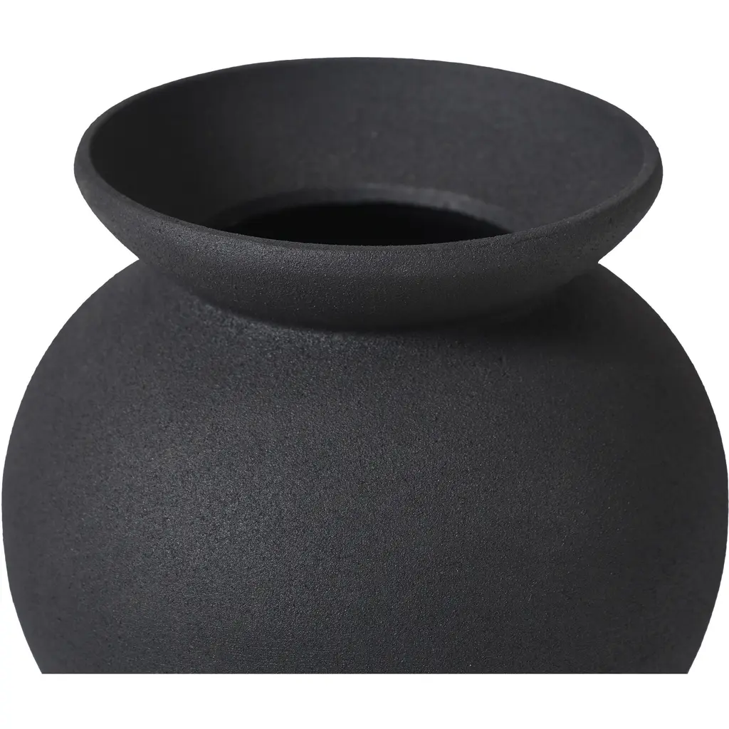 Whether you use this decorative vase to hold a bunch of faux greenery or leave it empty for a minimalist look, this vessel is a perfect choice to update your space. From its matte black textured finish to its curvy silhouette and perfect size, this modern cast aluminum vase is just what youve been waiting for.