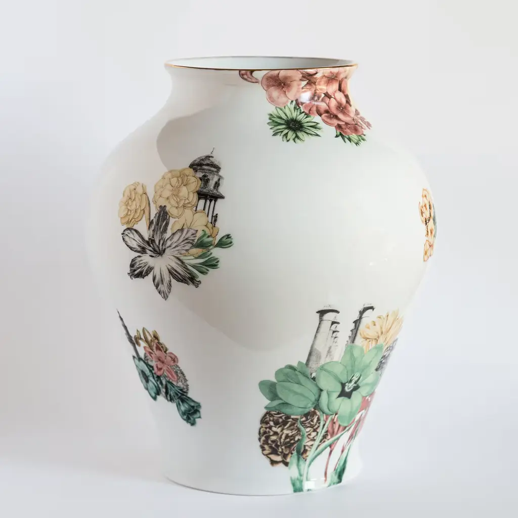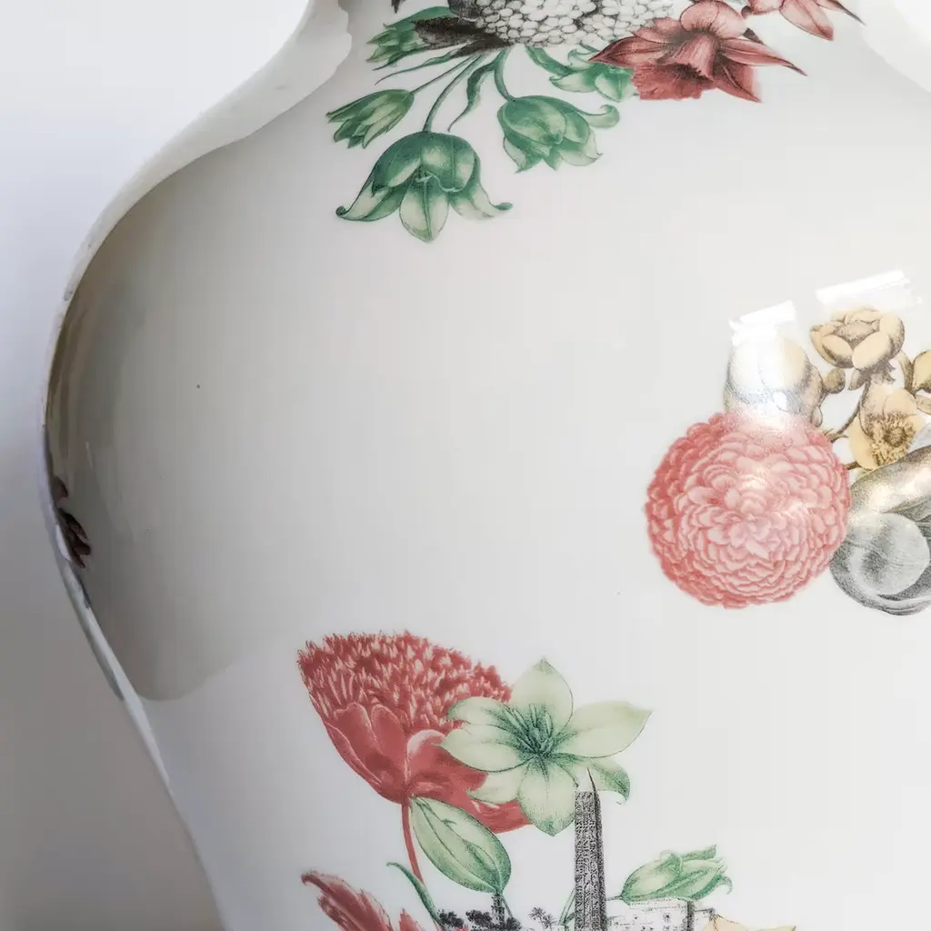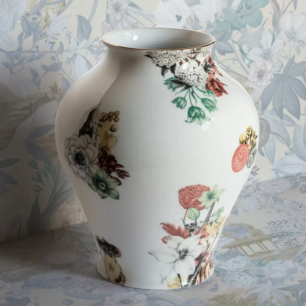 Cairo Amphora Porcelain Vase With Flowers And Architectures H27cm