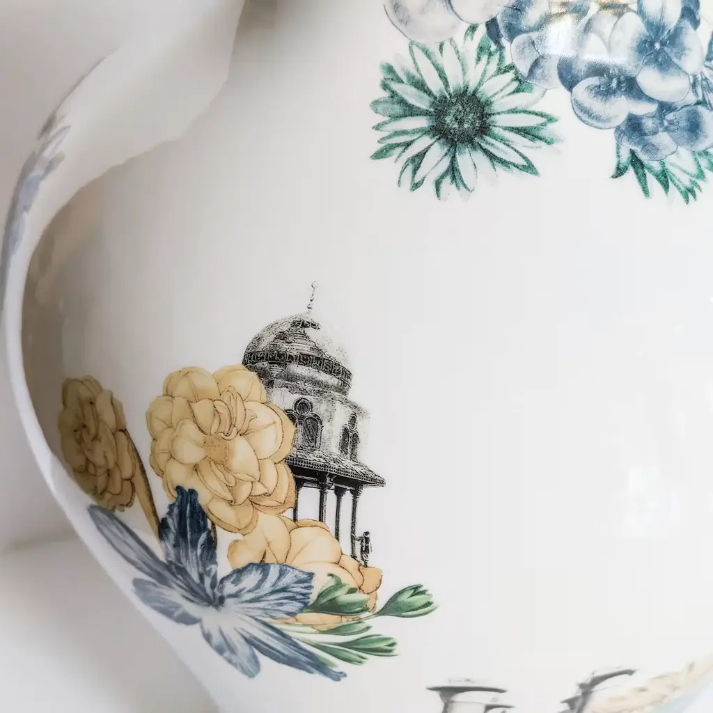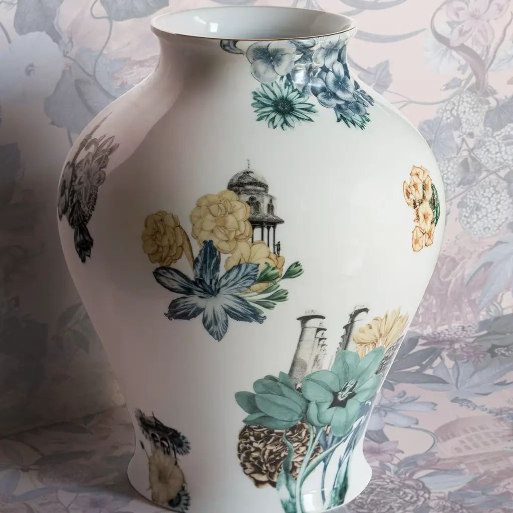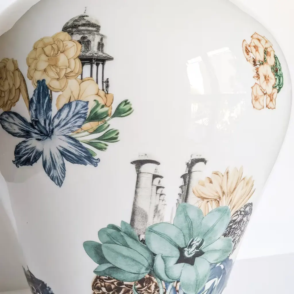 Cairo Amphora Porcelain Vase With Flowers And Architectures H32cm