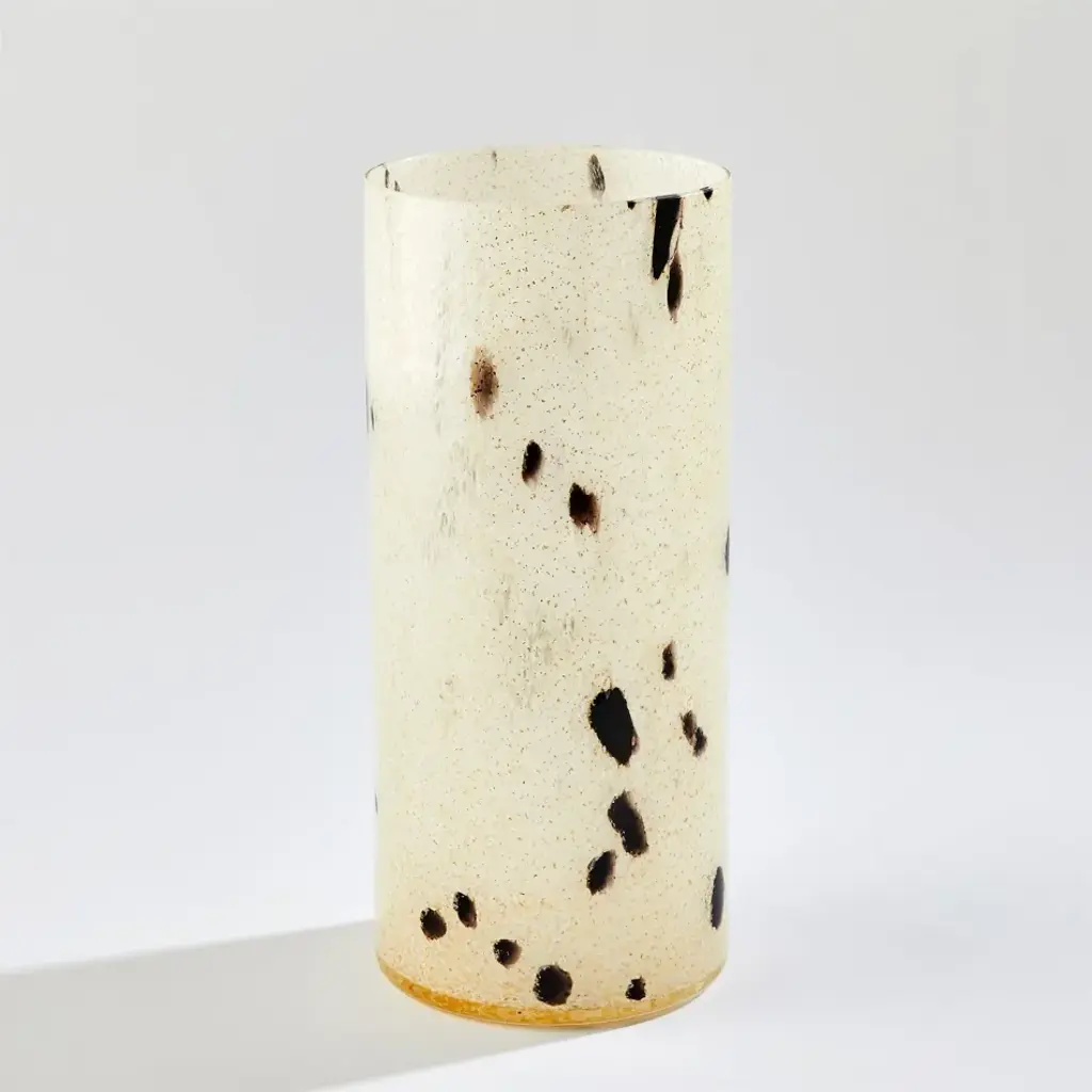 Crafted from mouth-blown Polish art glass, the Calico Vases are a true masterpiece of glasswork. They feature a spattering of beige and black colored glass with mesmerizing golden flecks, creating a unique pattern in each piece. From a fashion forward perspective, Global Views offers accessories, furniture, statement lighting, and an assortment of rugs and mirrors to add beauty and joy to your home.