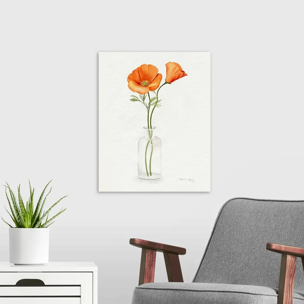 California Poppy Vase II wall art for home and office decor. Discover canvas art prints, photos, mural, big canvas art and framed wall art in GreatBigCanvas.com's varied collections.