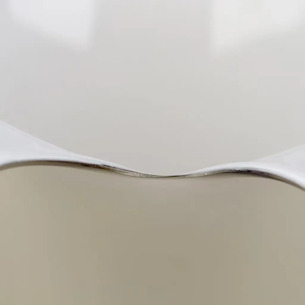 Elegant reproduction of a delicate calla's bud, this sophisticated vase mouth-blown from Murano glass is a showcase of deft craftsmanship. Its fluid edges softly reveal the dichotomy of nuances between the interior and the exterior, achieved using the "incamiciato" technique, where two glass sheets in different colors - here white and gray - get partially molten to turn in a single, two-tone one.