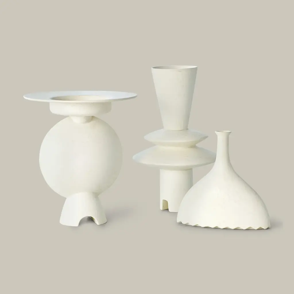 The Camille Geometric Vase has a beautiful silhouette with a graphic presence. Equal parts sculpture and vessel, the Camille will update any shelf, surface, or space with luxurious modernity.