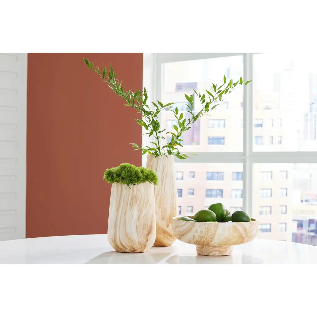 Naturally flowing swirls and neutral hues give the Cammen ceramic vase a wonderfully organic feel. Its wide neck accommodates faux florals and other decorative fillers with ease. Whether it’s on an entryway table, desk or bookshelf, this striking vase is a tasteful addition to your creatively curated home. - Product Details provided by Manufacturer, Slumberland not responsible for errors in information.