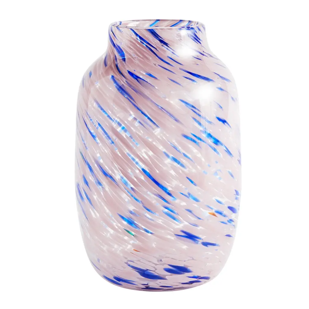Boasting a playful, onion-like silhouette this remarkable vase is masterfully crafted with the glass cane and intricate reticello decorative glassblowing technique, creating an astonishing, quasi-gossamer netting. Showcasing vibrant blue and red hues with wedges of white webbing, this splendid objet d'art will also highlight a luscious bouquet.