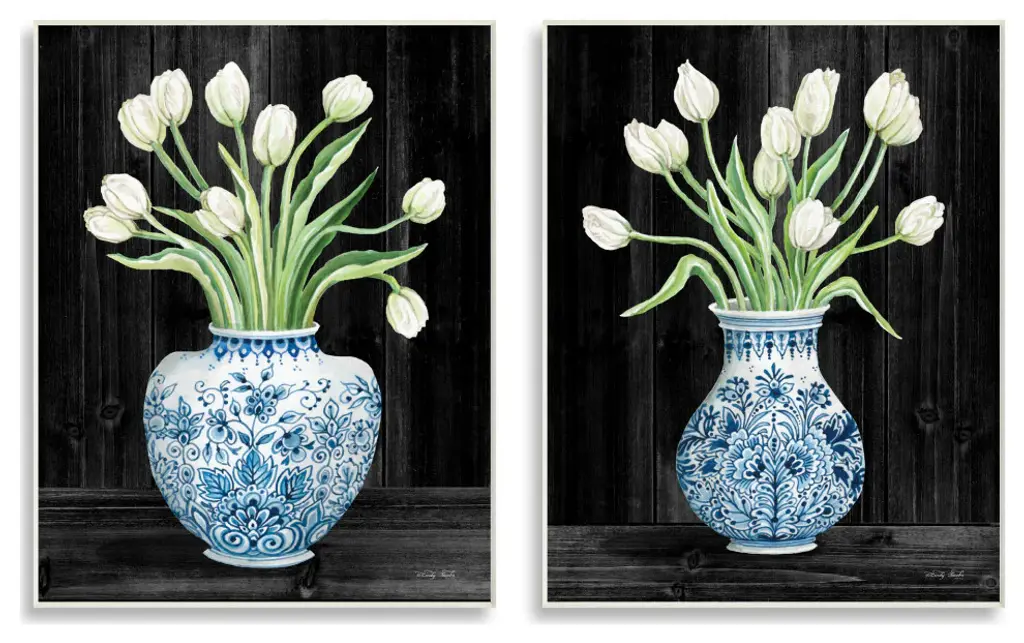 Blue hues ranging from light to dark accent clean, contemporary porcelain vases. Display alone or with beautiful flowers.