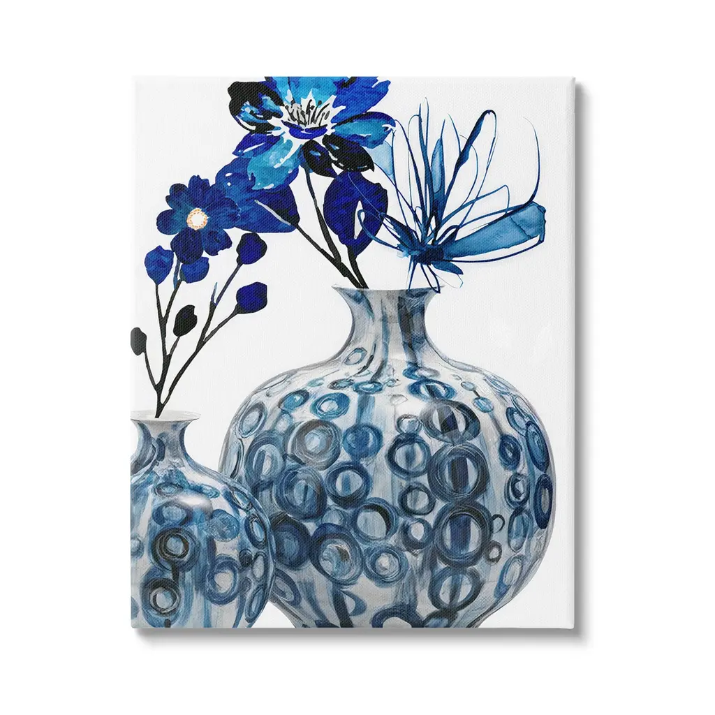 Canvas Set Of 2 Abstract Hand Painted Blue And White Vases Porcelain