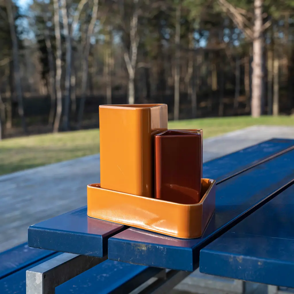 Canvas’ starting point was one of raawii’s core guiding principles: creating a space for creativity and cross-disciplinary collaboration. The collection welcomes playful improvisation and endless combinations. Created with no pre-set purpose, the three items – small container, larger container and centerpiece – can be mixed and matched, to host anything from flowers to kitchen utensils. Features