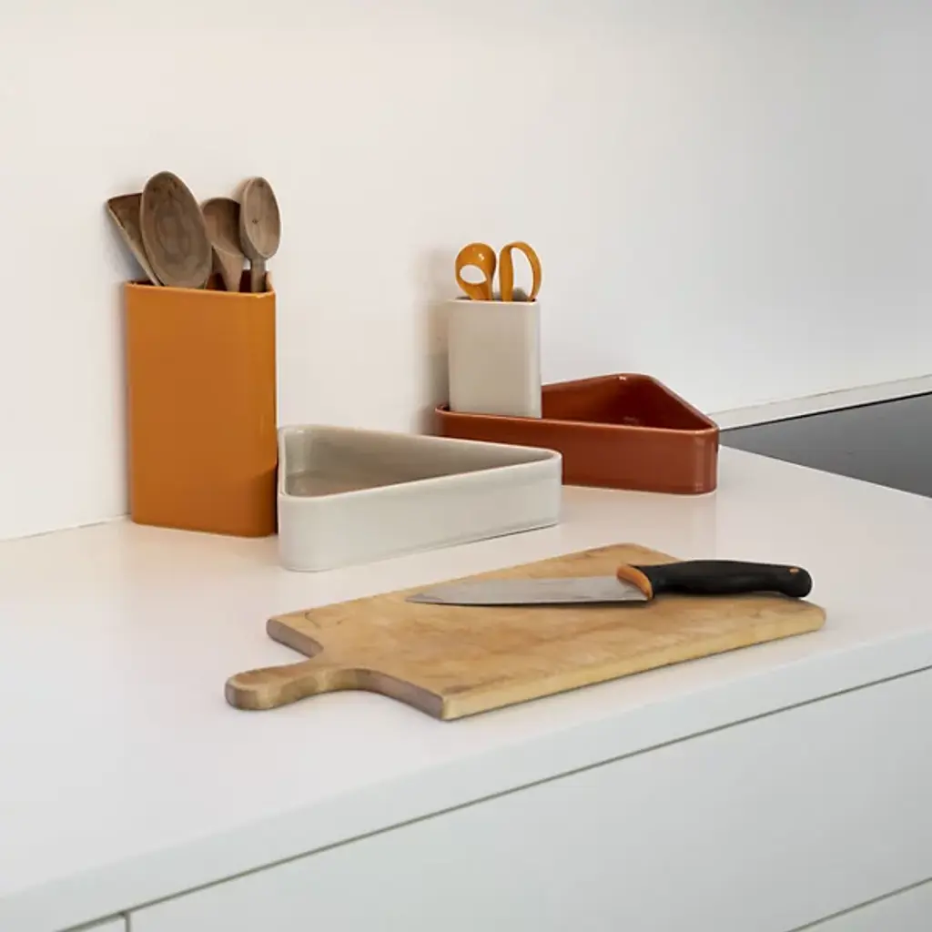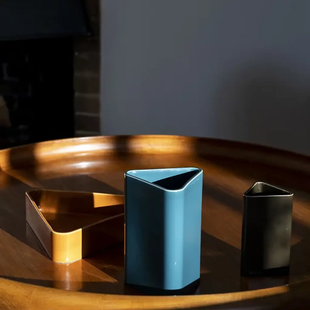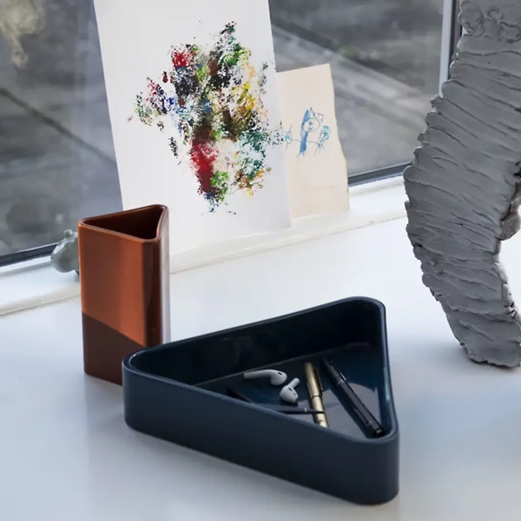 The Canvas Vase from Raawii shows off a gorgeous triangular cup structure with clean contemporary lines. Designed by Nicholai Wiig-Hansen and handmade from earthenware in Portugal, it features a gorgeous finish, reflecting a sense of fun and the possibility of improvisation. The design can stand well on its own as an accent, or contain other items from plant life to desktop or kitchen essentials.