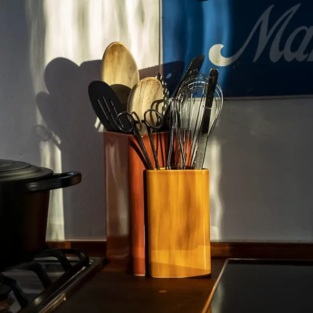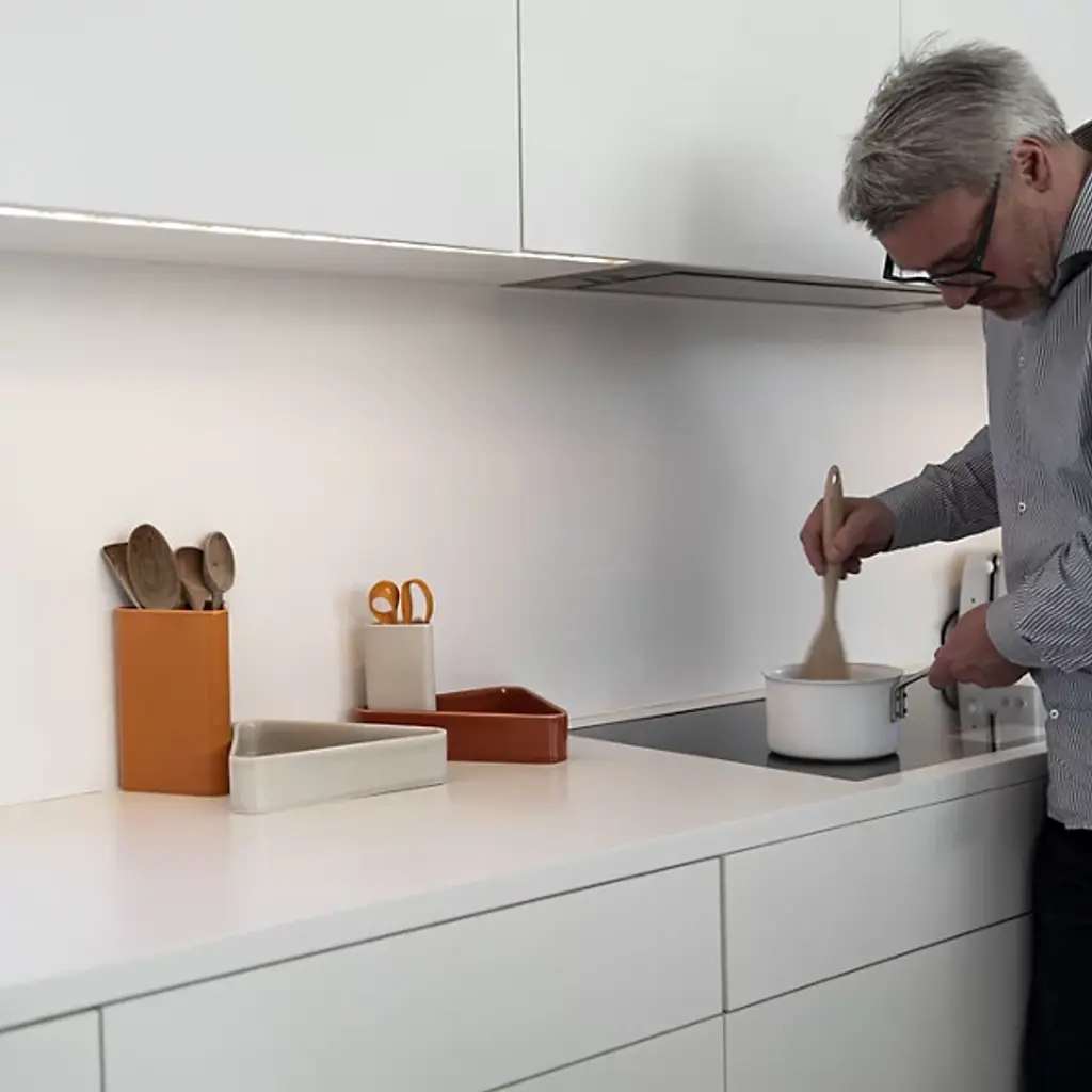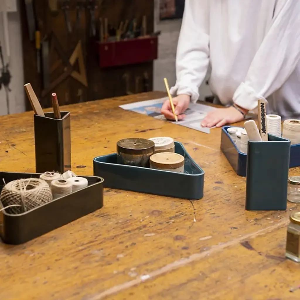 The Canvas Vase from Raawii shows off a gorgeous triangular cup structure with clean contemporary lines. Designed by Nicholai Wiig-Hansen and handmade from earthenware in Portugal, it features a gorgeous finish, reflecting a sense of fun and the possibility of improvisation. The design can stand well on its own as an accent, or contain other items from plant life to desktop or kitchen essentials.