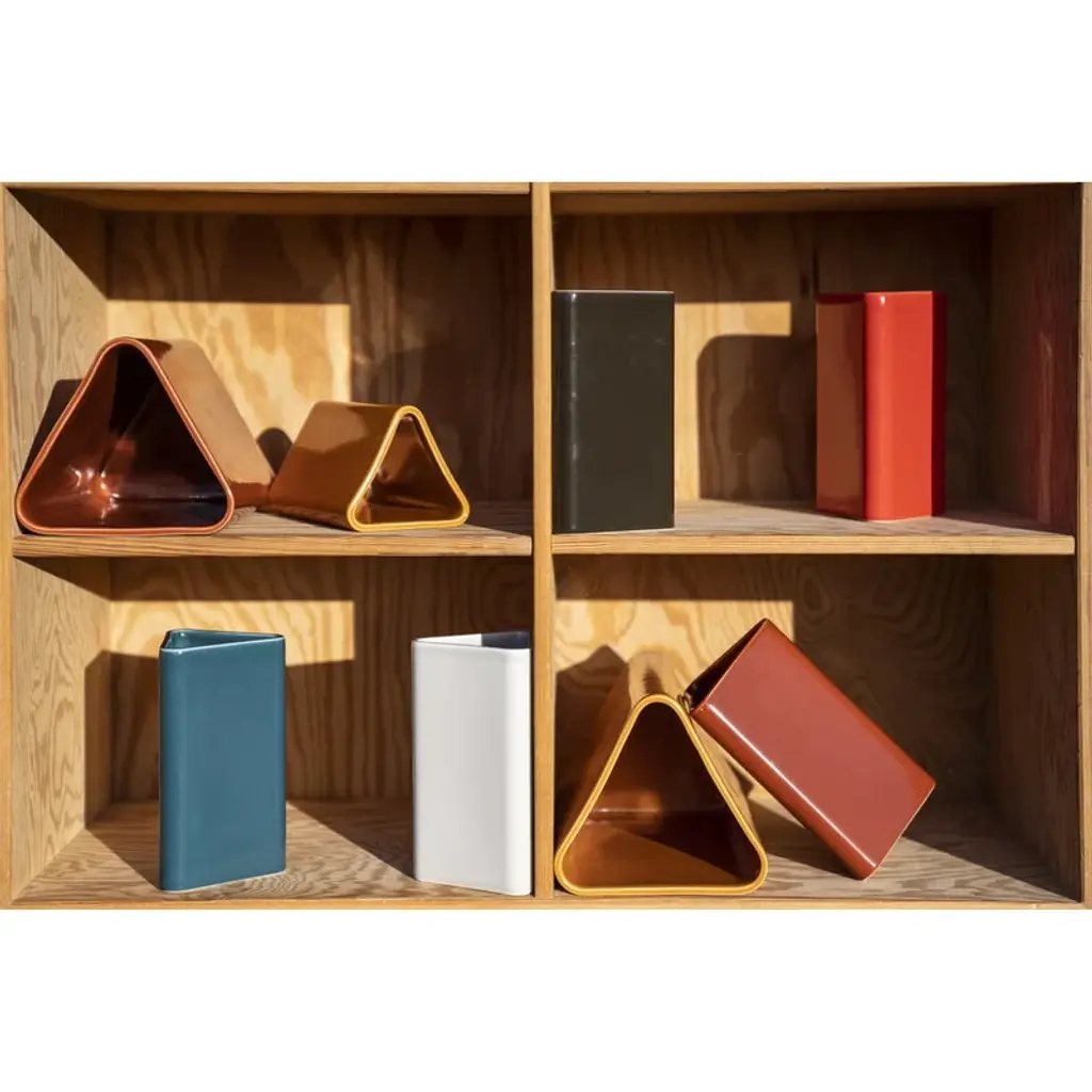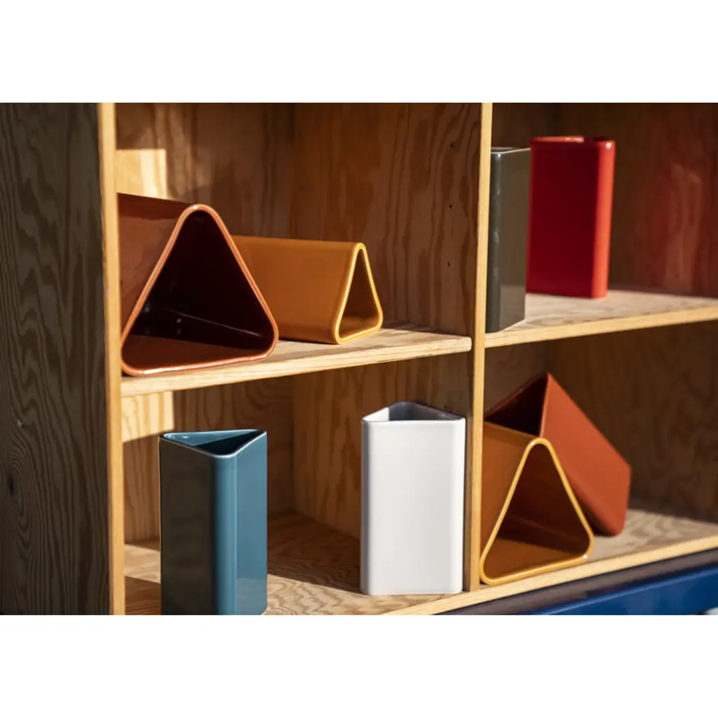 Raawii’s Canvas vase arouses curiosity with its exciting triangular shape. The charming vase can be used as a vase, a carafe, or a pen holder – the only limit is your creativity! The Canvas vase does not have a single predefined purpose, but rather allows room for experimentation and creativity. With its playful shape and bold colors, the Canvas collection can be mixed and matched in endless ways to create surprising new compositions. The Canvas vase and other items in the series are handmade in Portugal. As a result of the handicraft process, slight variations in the surface of the vase can occur, making the final piece fascinating and unique.