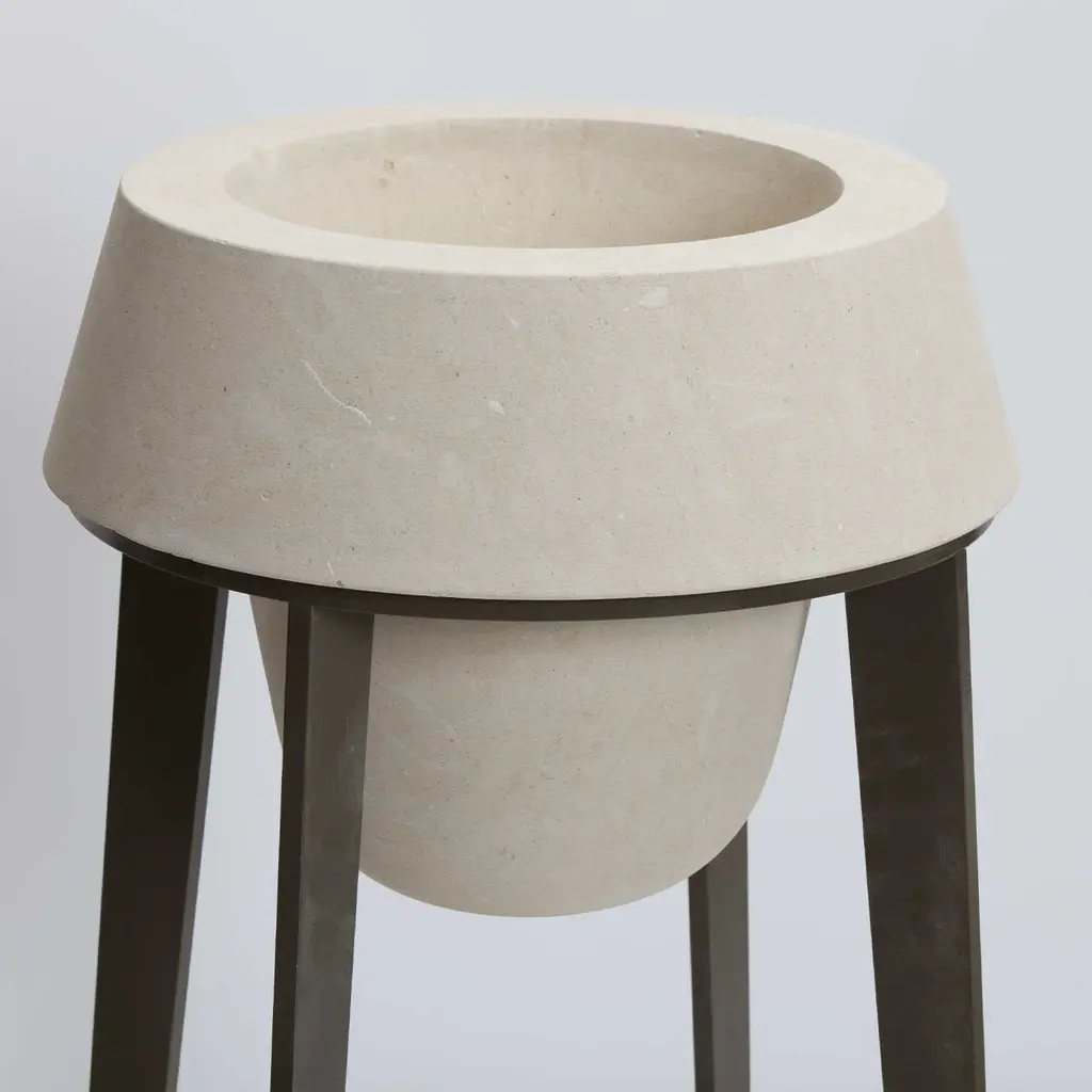 Capasa Tall Iron & Lecce Limestone Vase By Silvio De Ponte