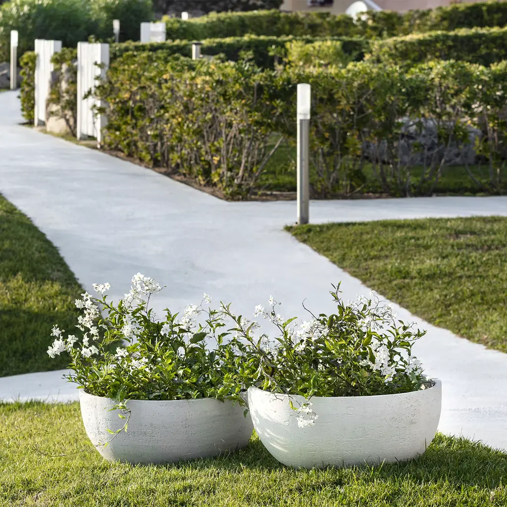 Caprera is a collection of handmade vases made of natural clay. It is available in different sizes and colors: brown, gray and white. It is UV-resistant, and its high firing temperature makes it impact-resistant.
