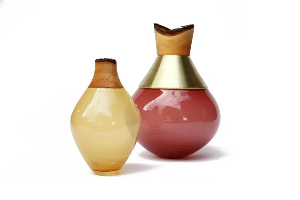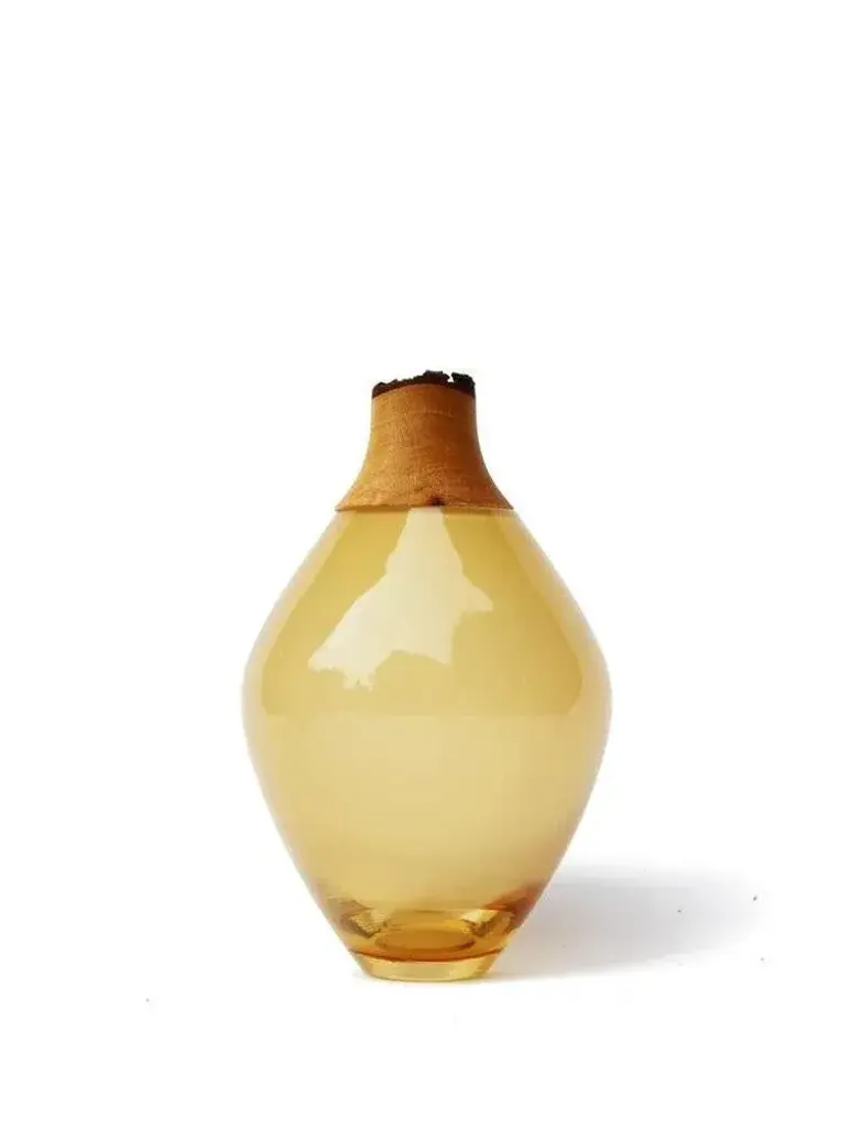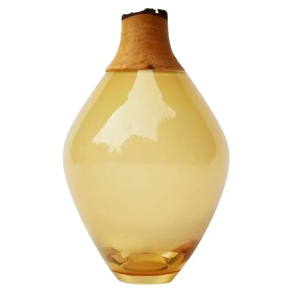 Caramel matisse stacking vessel iii, pia wüstenberg. Dimensions: d 11 x h 21. Materials: glass, wood. The matisse stacking vessels are treasures, small splashes of curvy glass with a wooden crown. The collection was originally designed for the tate museum in london and inspired by the colour palette of the french painter. Their subtle presence makes them spontaneous design collectibles. Handmade in europe: handblown glass (czech republic), hand turned wood (finland). The materials then come to our warehouse in north germany where they are fitted and assembled. this piece is attributed to the mentioned designer/maker. It has no attribution mark and no official proof of authenticity, however it is well documented in design history. I take full responsibility for any authenticity issues arising from misattribution