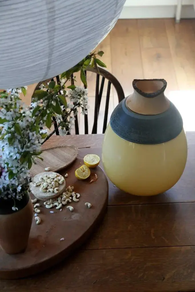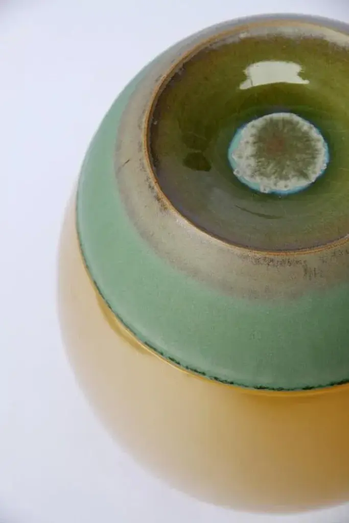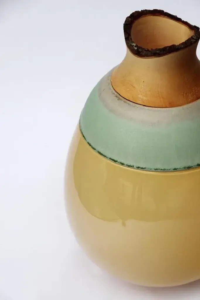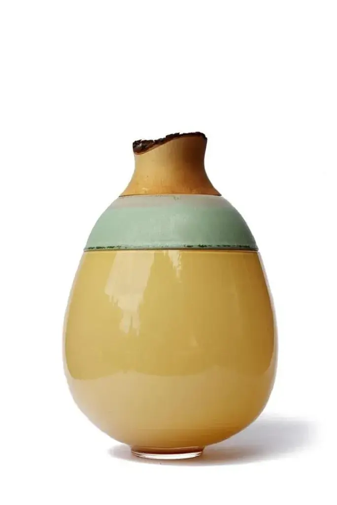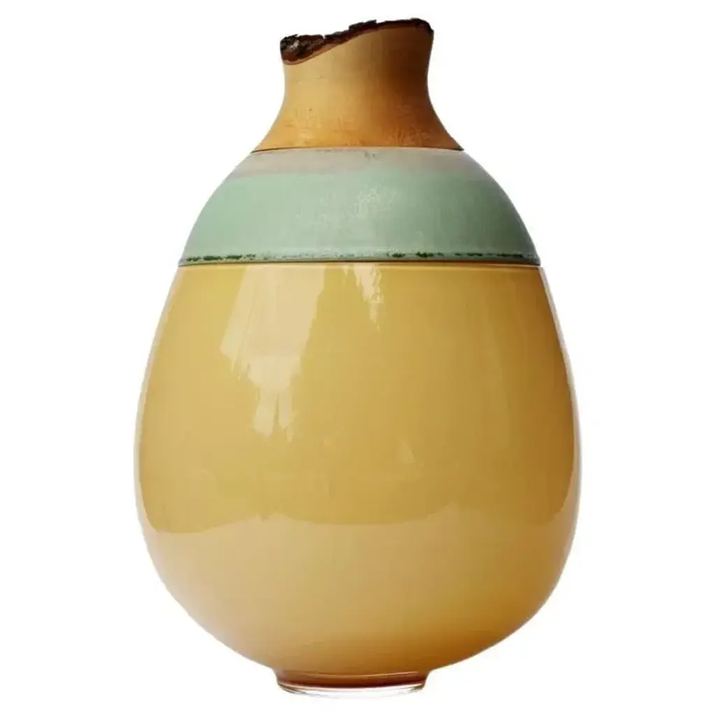 Caramel paradise lilith stacking vessel, pia wüstenberg dimensions: d 25 x h 42. Materials: glass, wood, ceramic. Available in other colors. A collection of two pieces, eve & lilith, combining large scale glass and stoneware ceramic with delightful glazes. Handmade in europe: handblown glass (czech republic), ceramic (handmade in scotland), hand turned wood (finland). The materials then come to our warehouse in north germany where they are fitted and assembled. This piece is attributed to the mentioned designer/maker. It has no attribution mark and no official proof of authenticity, however it is well documented in design history. I take full responsibility for any authenticity issues arising from misattribution