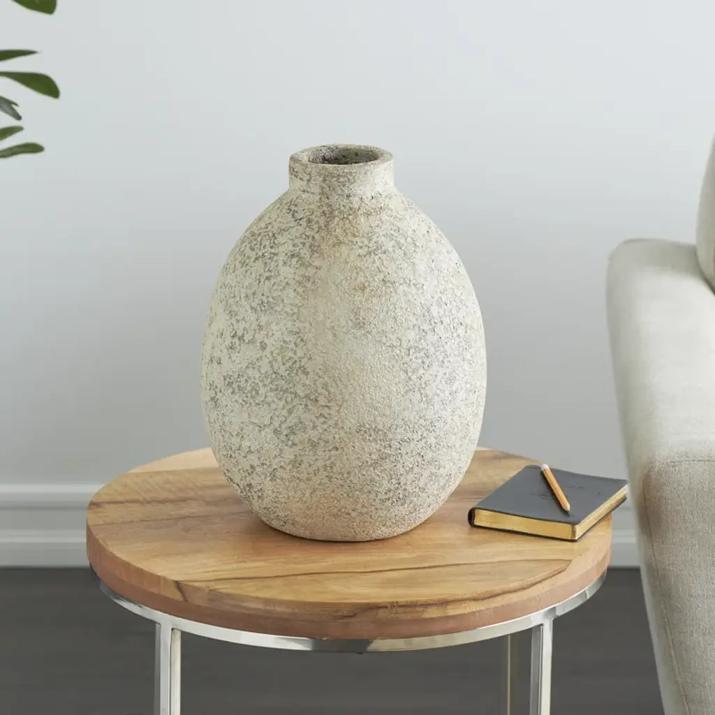 Use this vase as a centerpiece on your farmhouse-style dining table or as an eye-catching display on a mantel, allowing it to house dried flowers or stand alone as a rustic decor accent. This is a single vase.