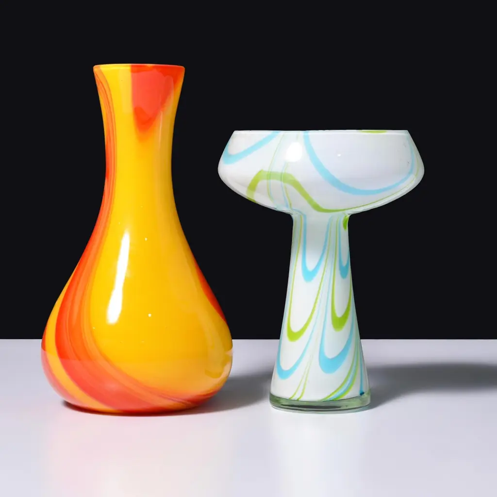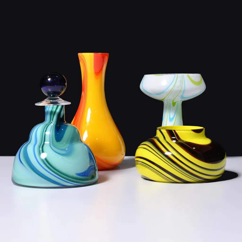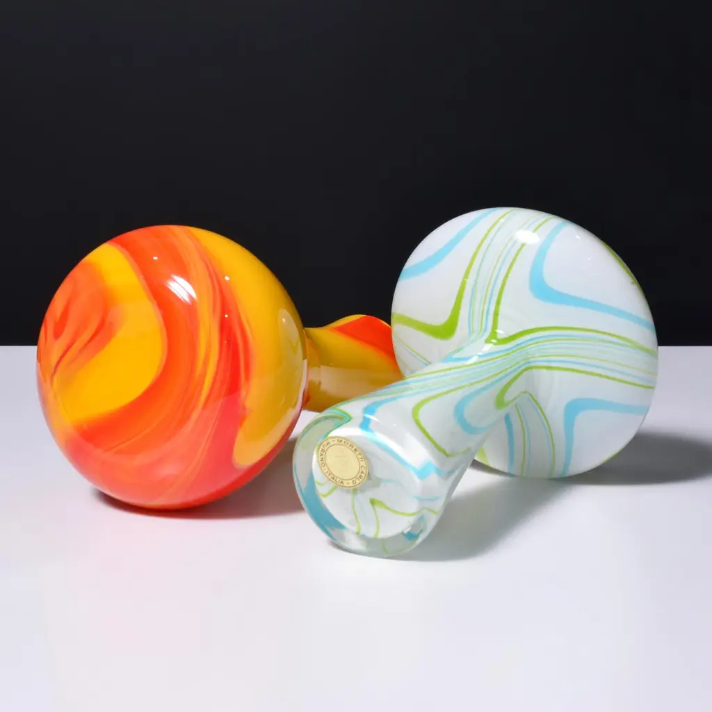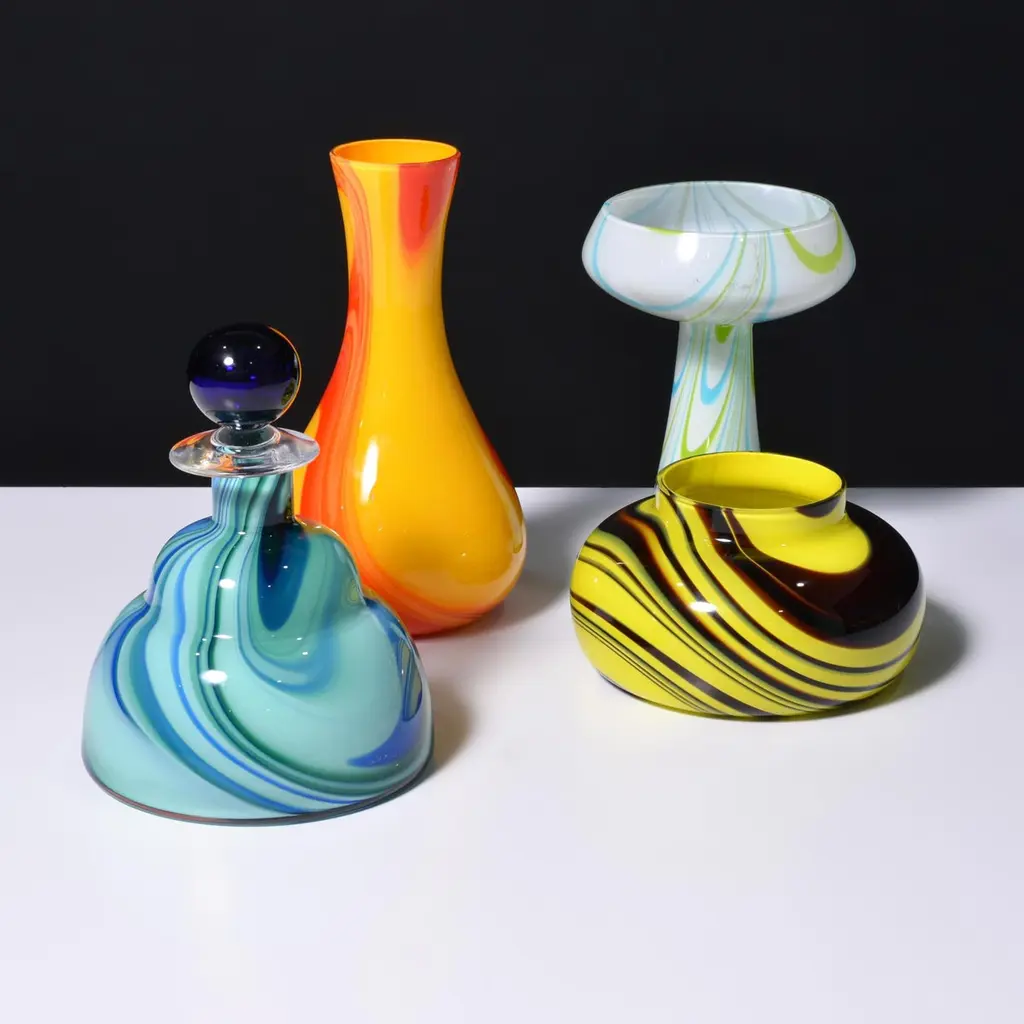 Artist/Designer; Manufacturer: Carlo Moretti (Italian, b. 1934)Marking(s); notes: Moretti label (3)Materials: glassDimensions (H, W, D): largest: 8.75"h, 4.75"diaAdditional Information: We have four (4) Carlo Moretti vases/vessels, priced each (please confirm availability, dimensions and condition). Reference (all pictured): Italian Glass Century 20, Leslie Pina, pgs. 49, 50, 136 & 175. Provenance: Collection of Leslie & Ramon Pina, Beachwood, Ohio. Leslie Pina has authored over fifty books on 20th-century design, each focused on a specific area she and her husband Ramon personally collected and studied.Note: Please see our extensive collection of Murano glass and Carlo Moretti works, from the Leslie Pina estate, and listed on 1stdibs.