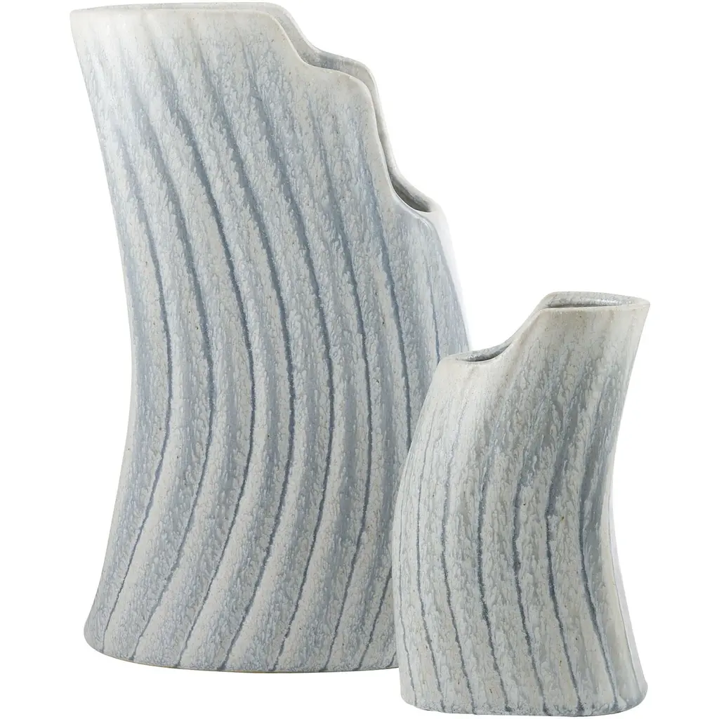 Resembling The Ocean's Breaking Waves Or The Cresting Fin Of A Whale, The Ribbed Surface Of Our Ceramic Vessels Possesses An Organic Appeal. Each Vase Was Finished With An Asymmetric Opening To Show Off A Lateral Gathering Of Blooms. Glazed In Icy Morn. Finish Will Vary.